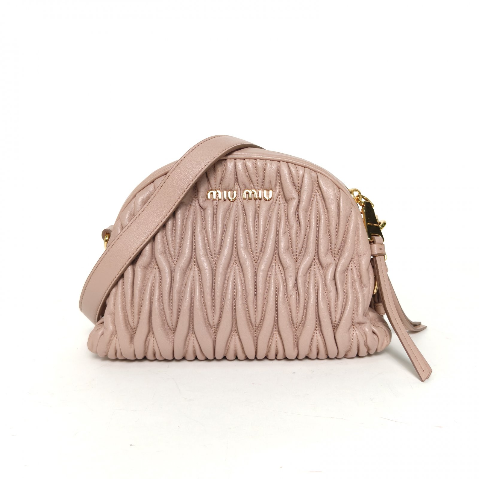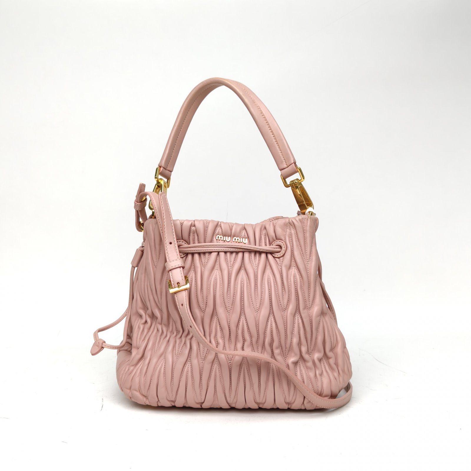 MIUMIU Pink Pleated Crossbody Bag with Detachable Shoulder Strap Drawstring Bucket