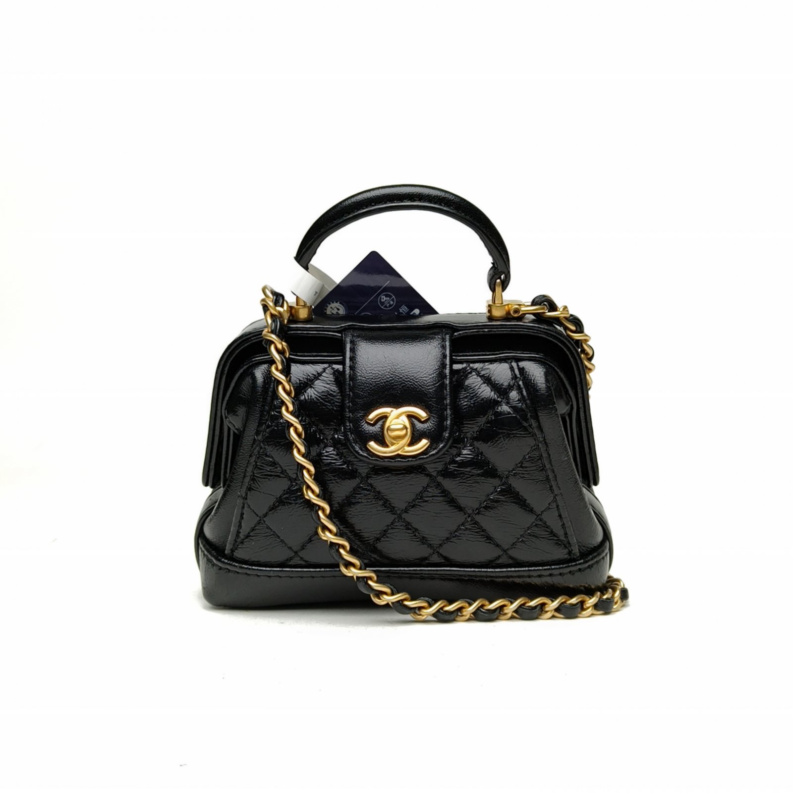 CHANEL Black Laser Label Gold Hardware Sliver Hardware 19BAG Chain Evening Bag Organ Bag 18.5cm mini