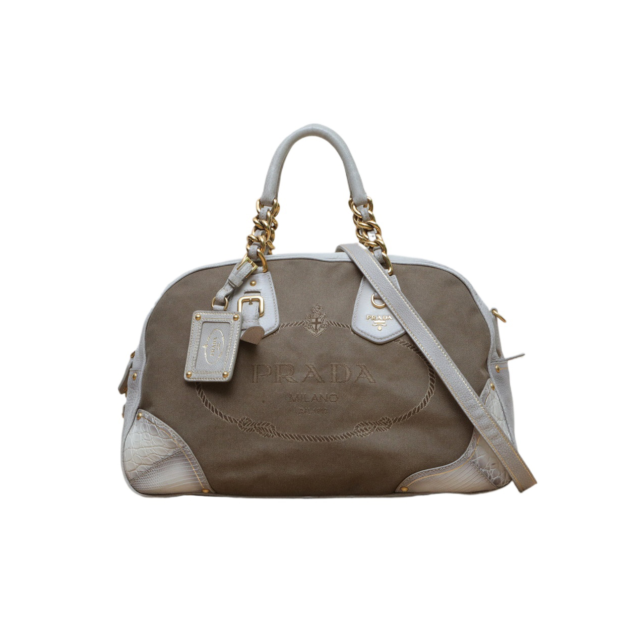 PRADA Brown Gold Hardware Handheld Turenne With Detachable Pouch 33cm