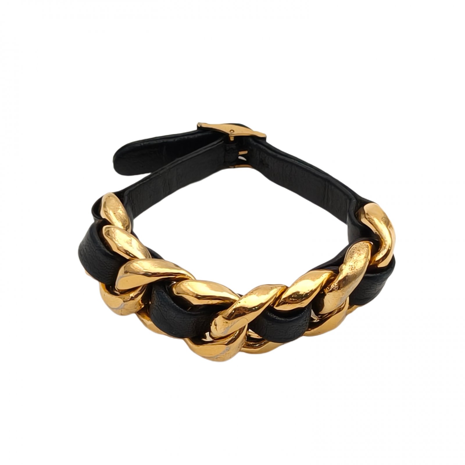 CHANEL Vintage Leather Chain Bracelet Alloy,Grained Leather