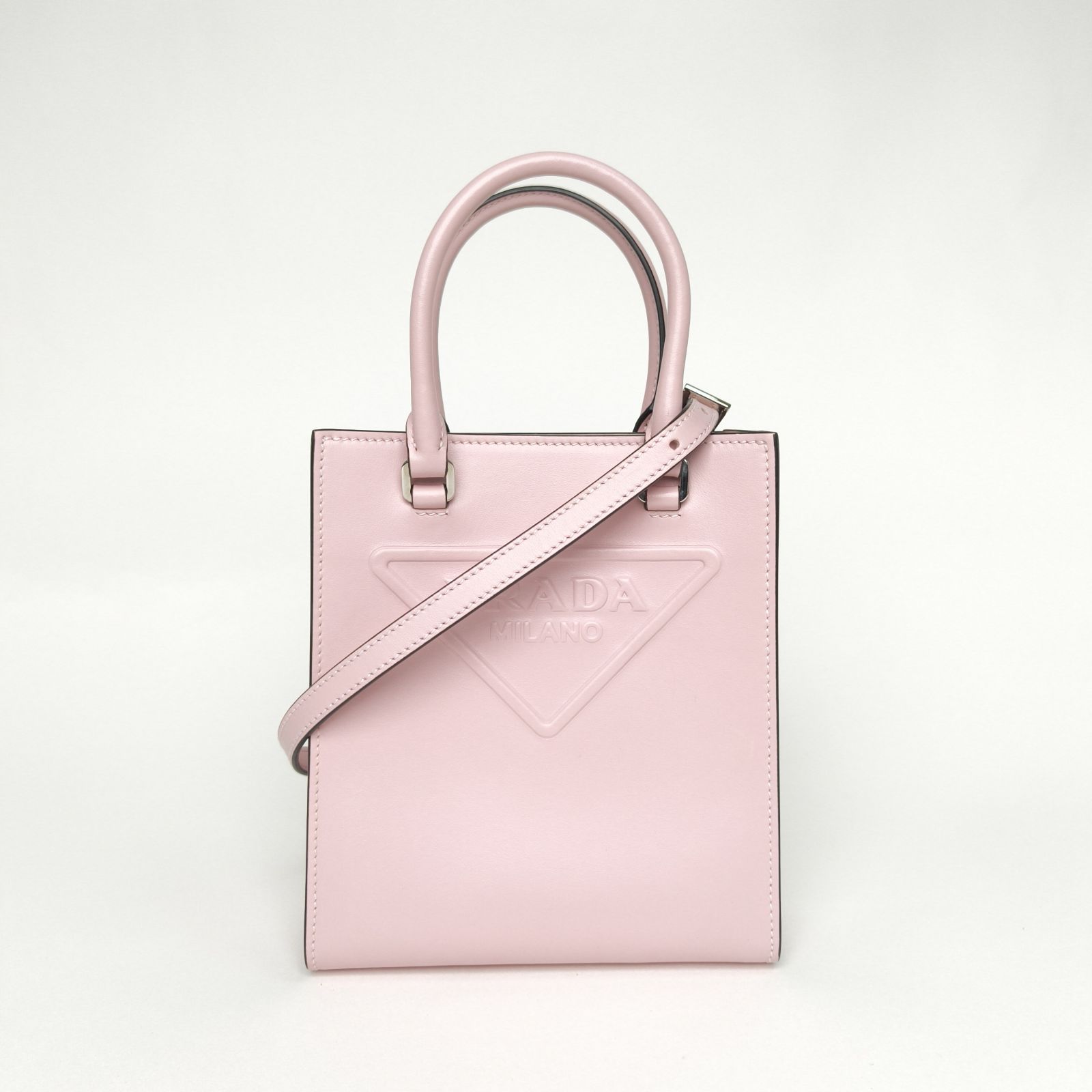 PRADA Pink Large Logo Embossed Leather Hand Tote Bag Small