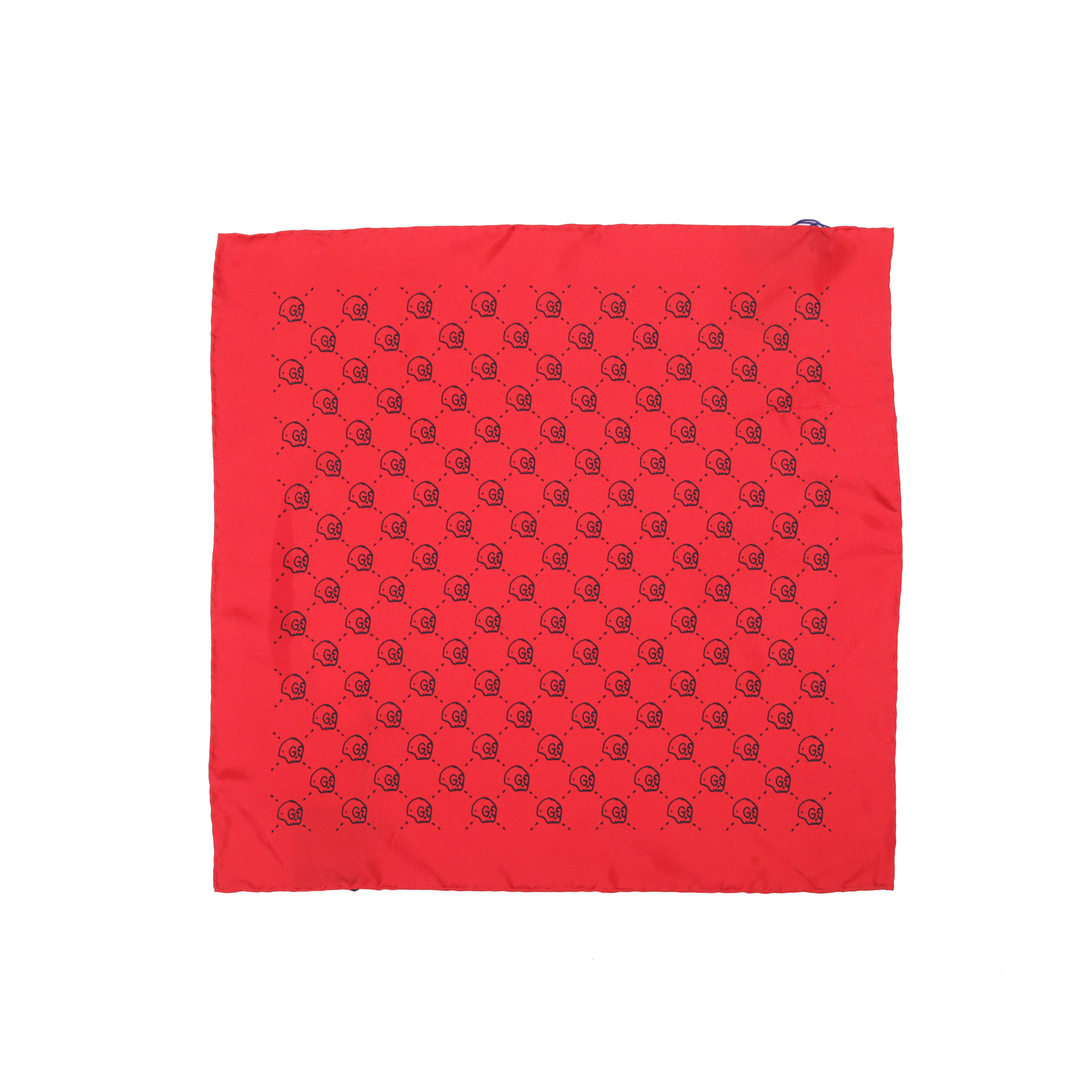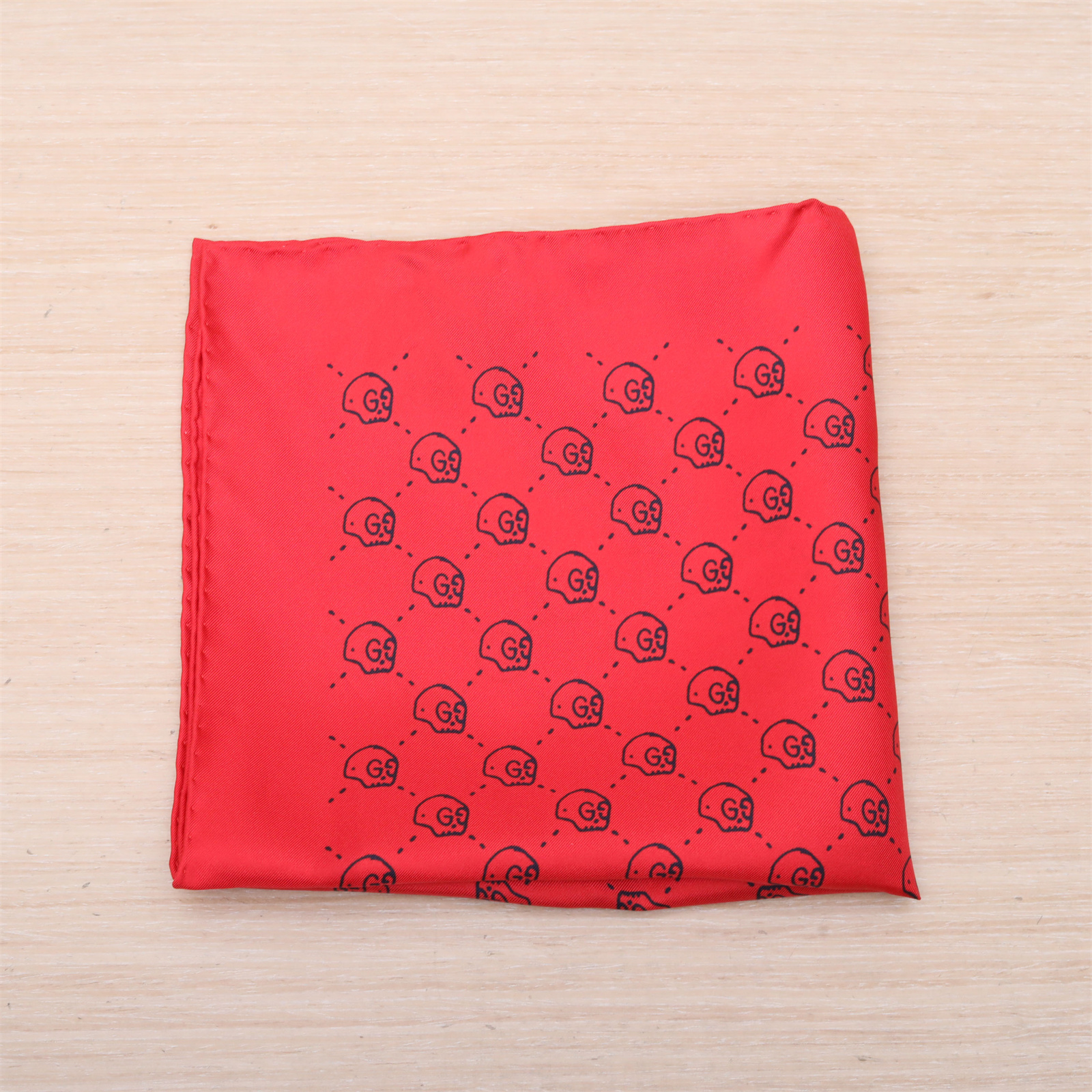 GUCCI Red and blue rolled edge bee pattern 70*70 Silk Scarf Camel