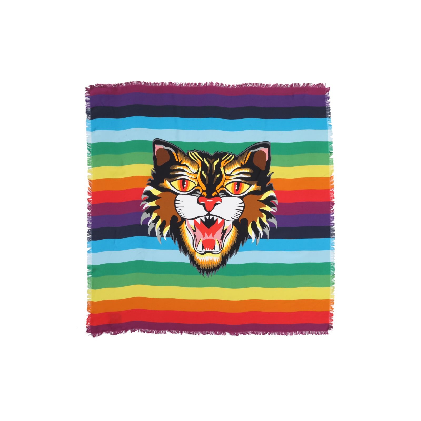 GUCCI GUCCI Letter Stripe Print Silk Scarf Color Block