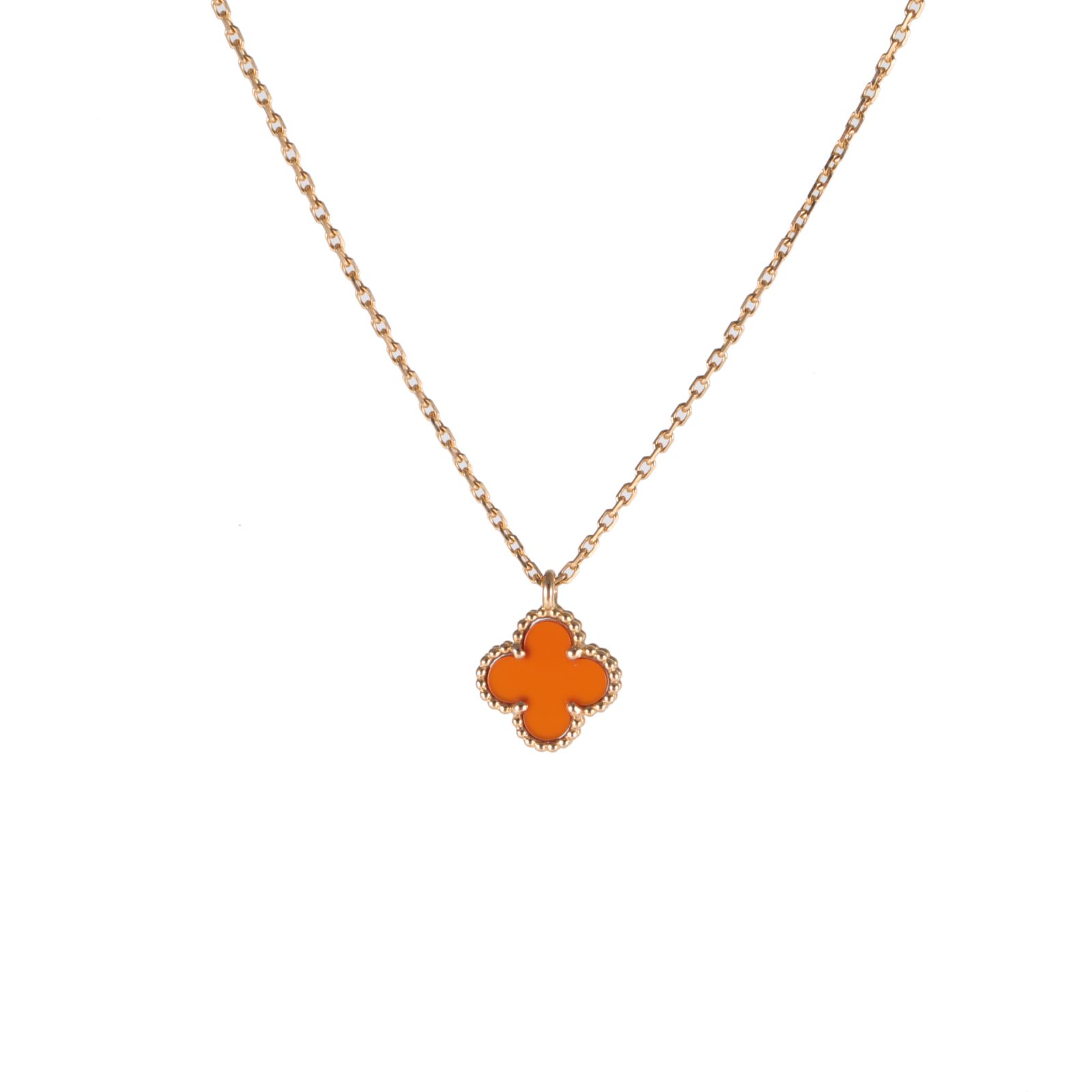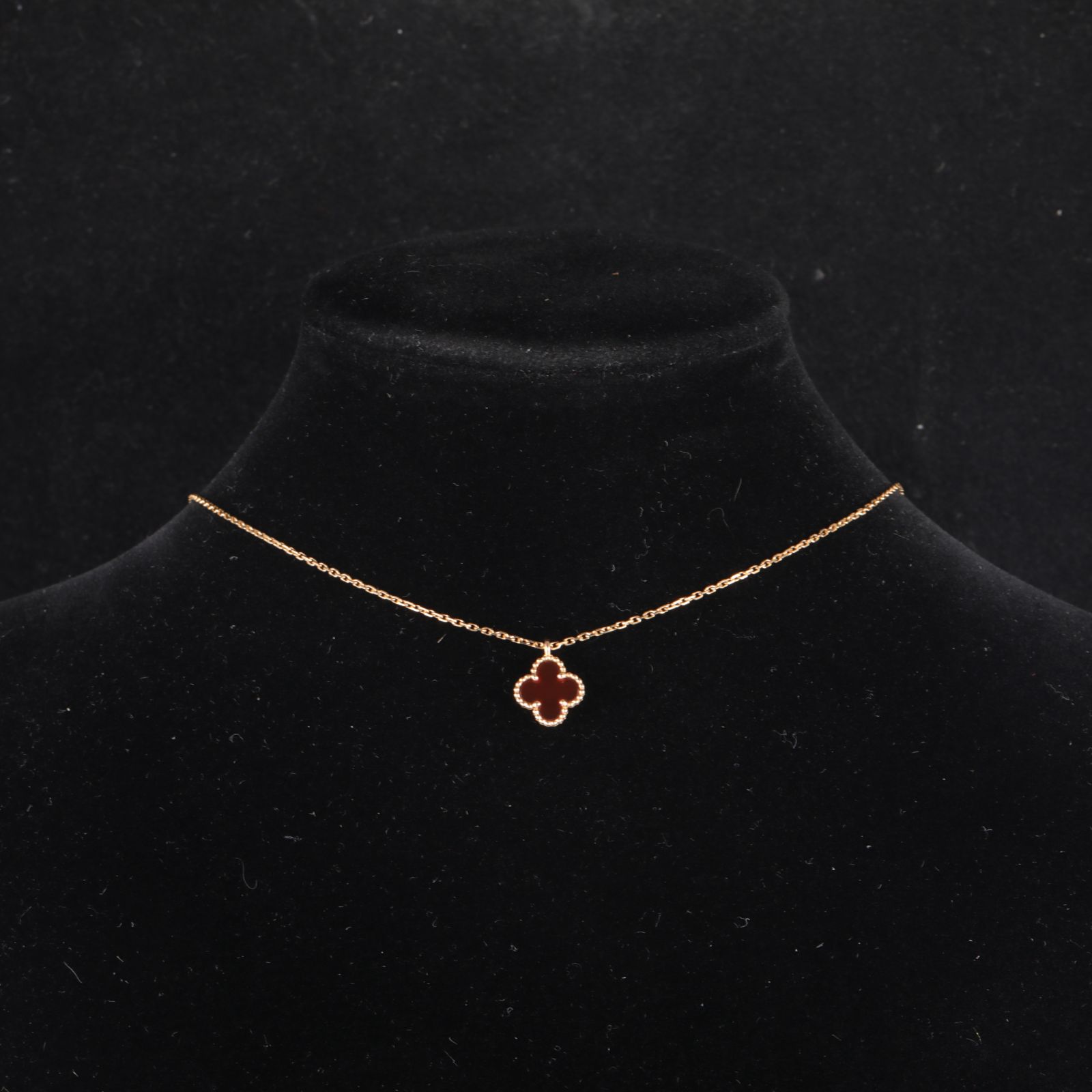 VAN CLEEF&ARPELS Sweet Alhambra Small Single Flower Necklace New Clasp 18K Rose Gold,Carnelian