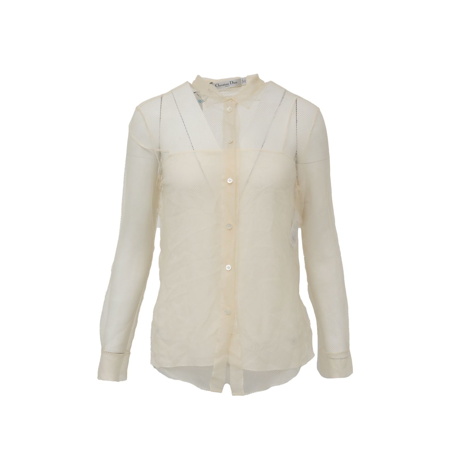 GUCCI U-neck Ruffled Hem Split Top 611468 White 38