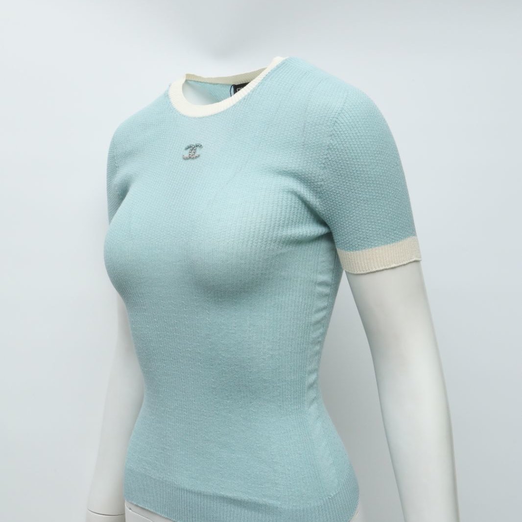 CHANEL Blue Diamond Buckle Double C Knit Slim T-shirt 34