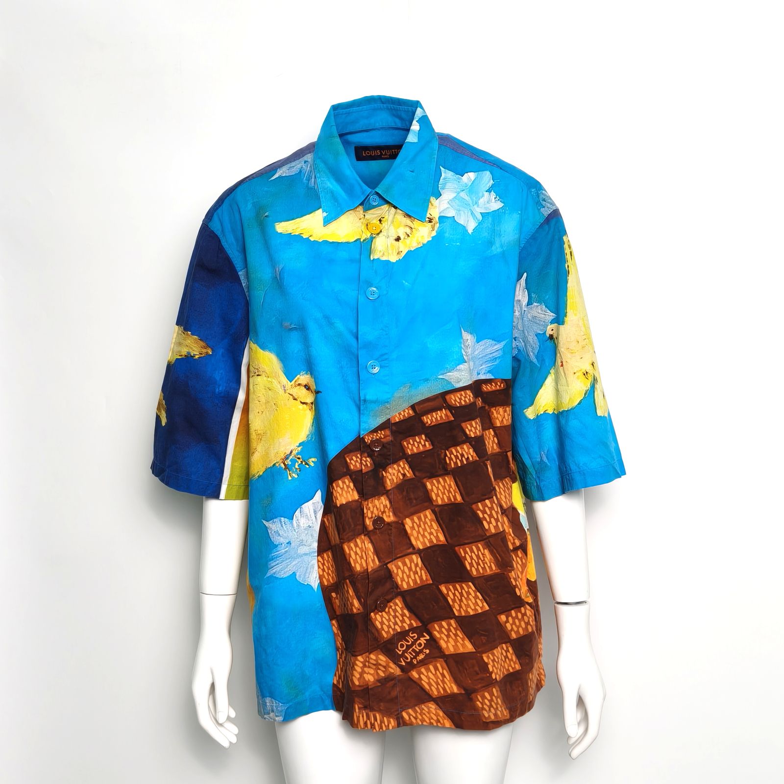 LOUIS VUITTON Print FW24 Chick Floral Checkerboard Short-sleeve Shirt M