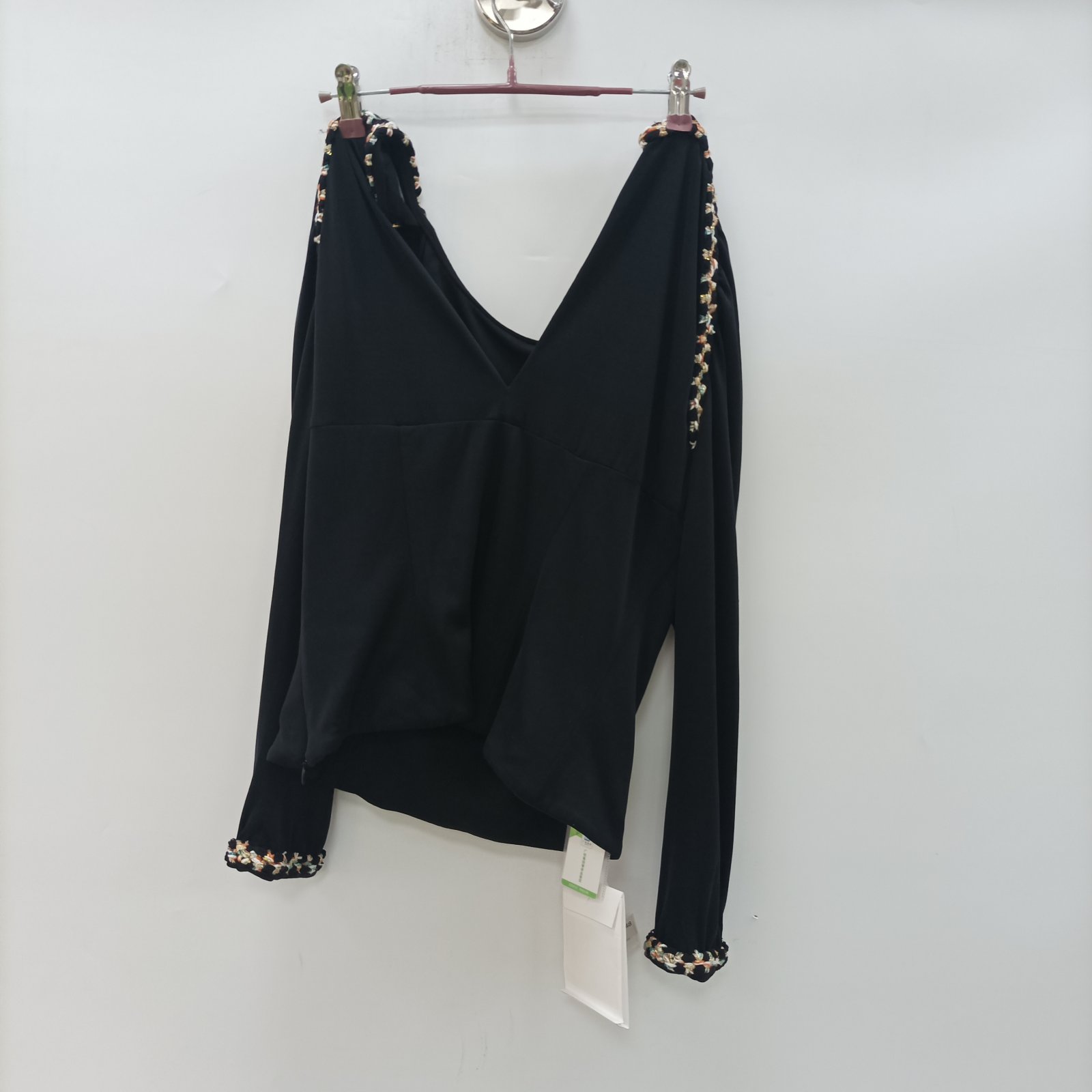 CHANEL Long-sleeve Waist-cinched T-shirt Black 40