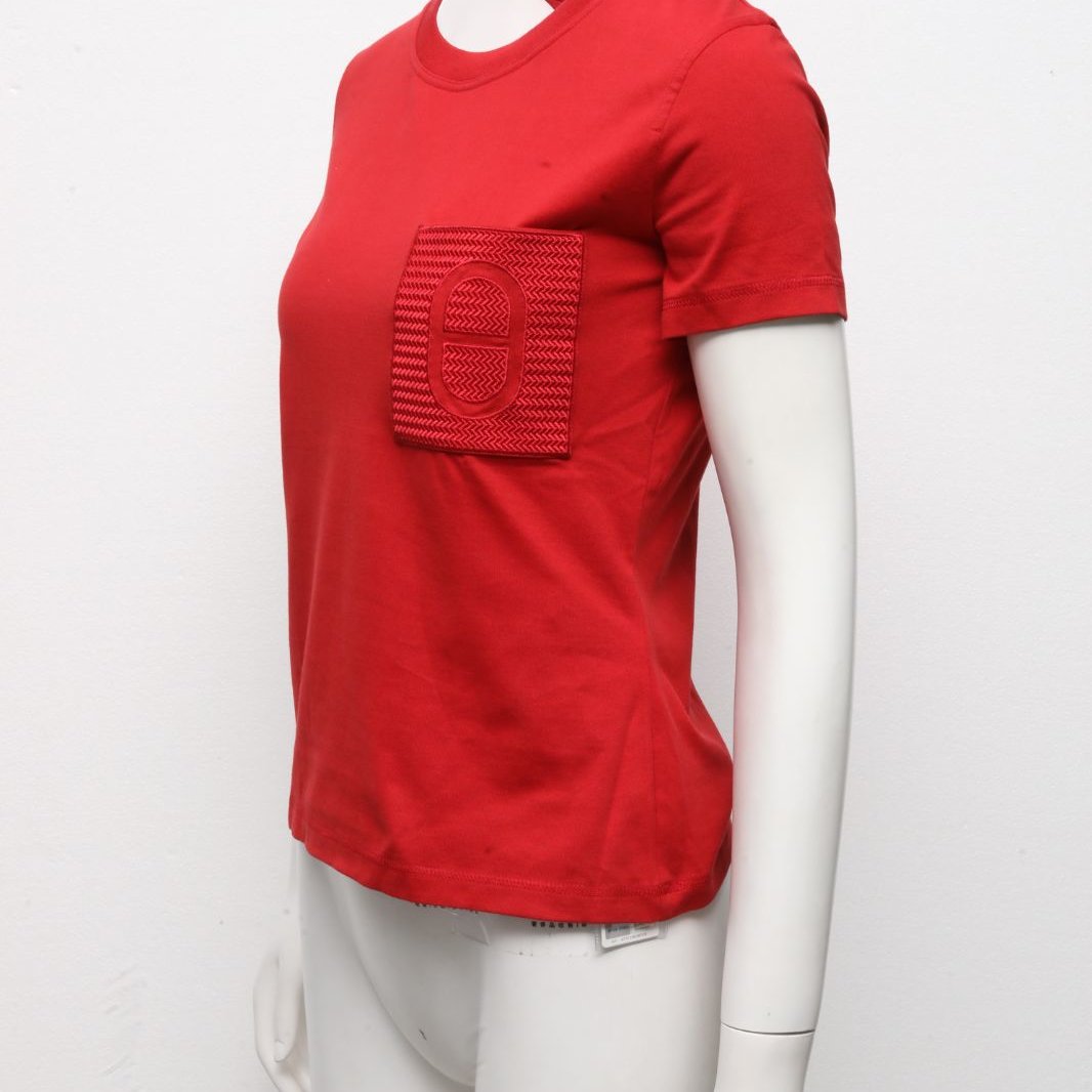 HERMES Red Pig Nose Pocket Embroidered Short-sleeve T-shirt 36