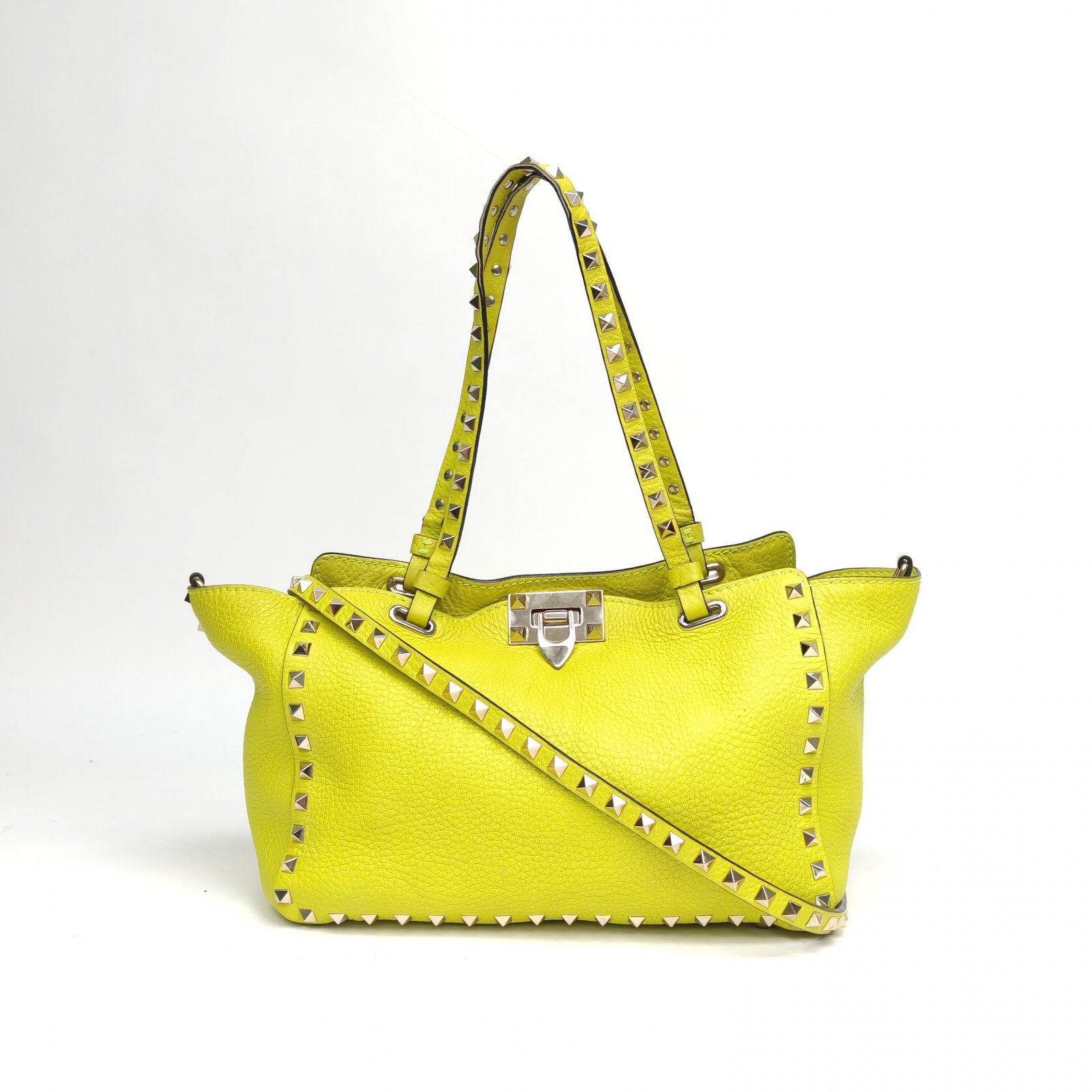 VALENTINO Yellow Rivet Handle Tote Bag Shoulder Bag
