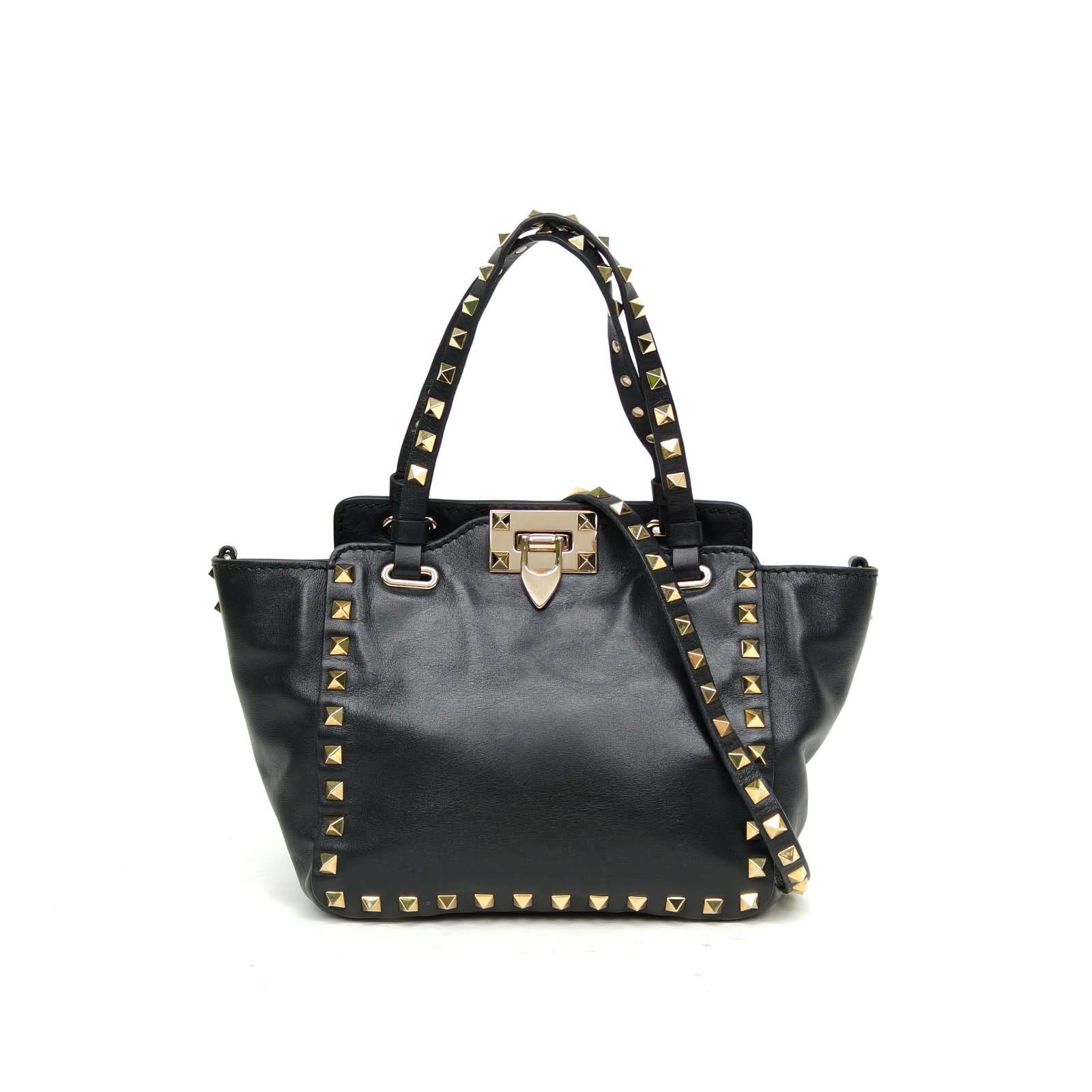 VALENTINO Black Gold Hardware Studded Tote Bag Nano
