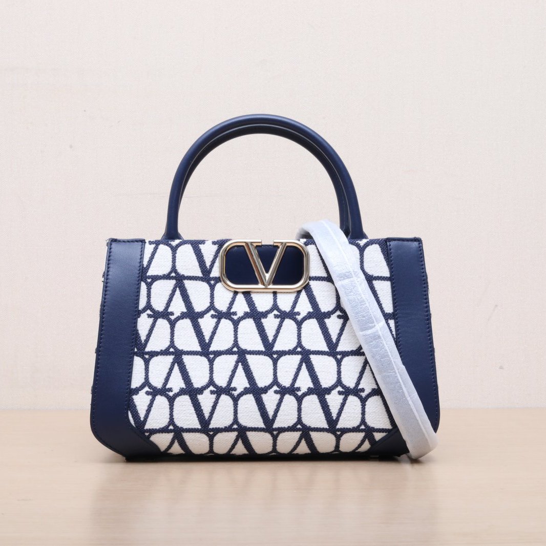 VALENTINO Color-blocked Canvas with Light Gold Hardware, Vlog SignatureV, Detachable Shoulder Strap, Magnetic Closure, Small Tote Bag for Hand Carry