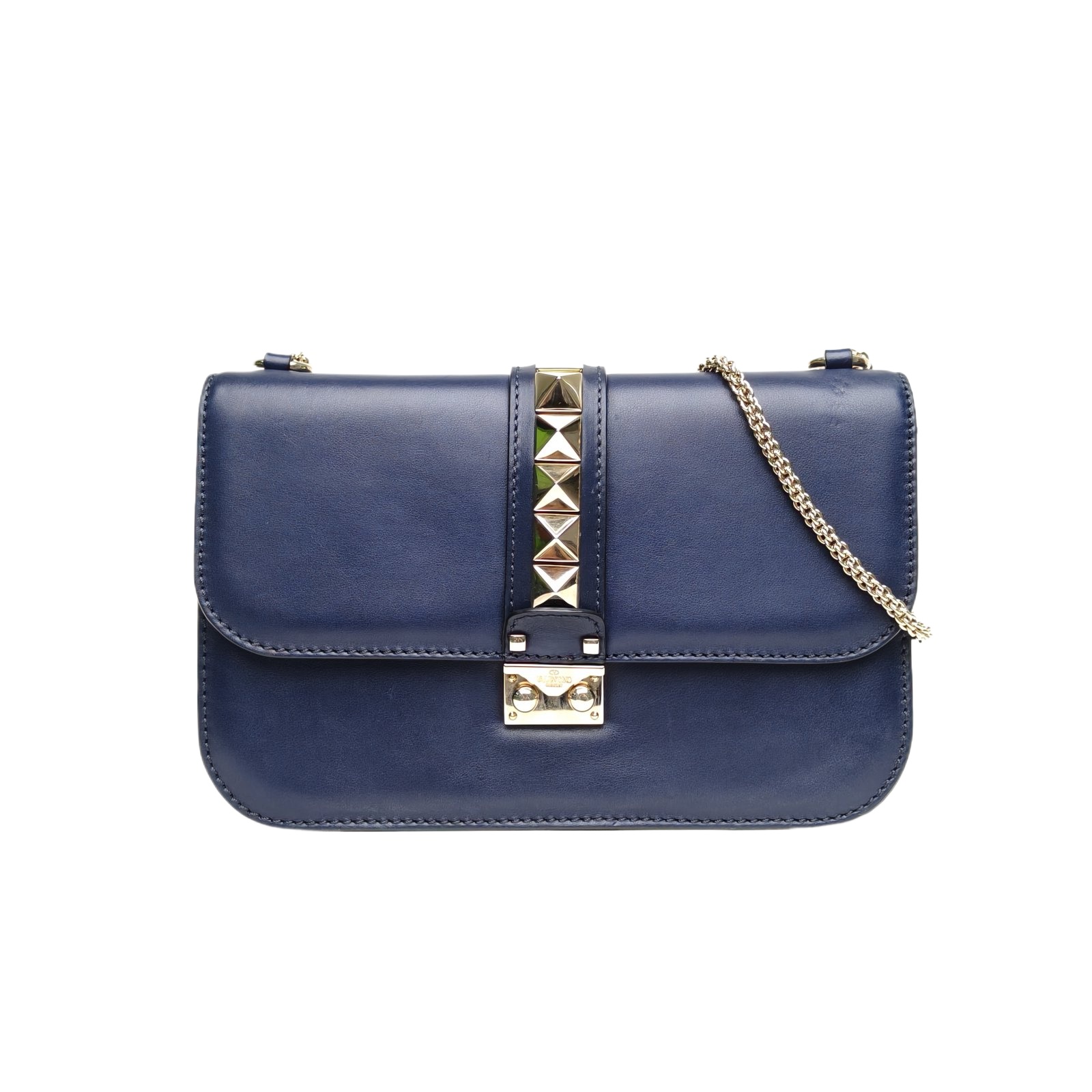 VALENTINO Ink Blue Gold Hardware Rivet Chain Bag Shoulder Bag