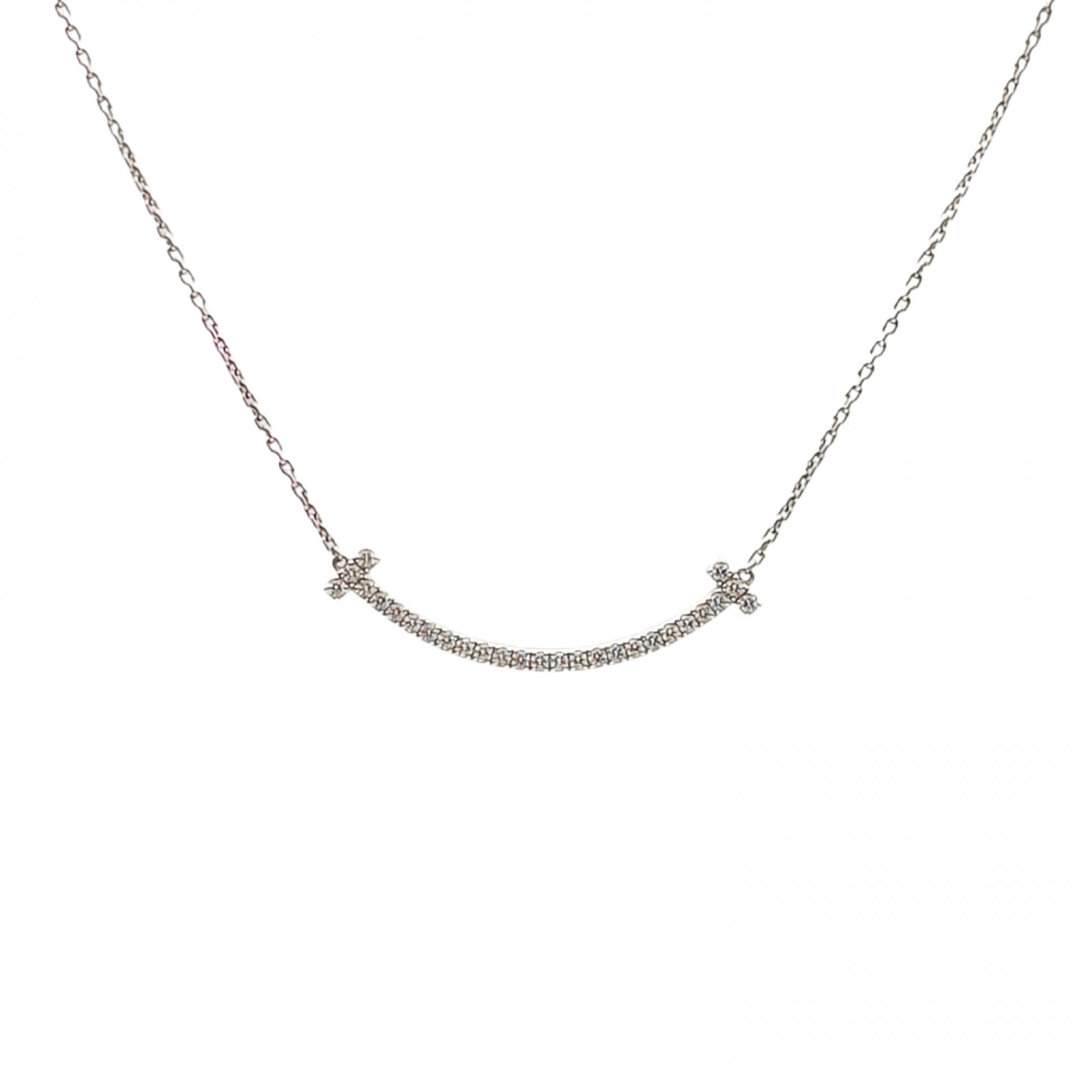 TIFFANY&CO Tiffany T Smile Necklace Wide Medium Full Diamonds 18K White Gold,Diamond
