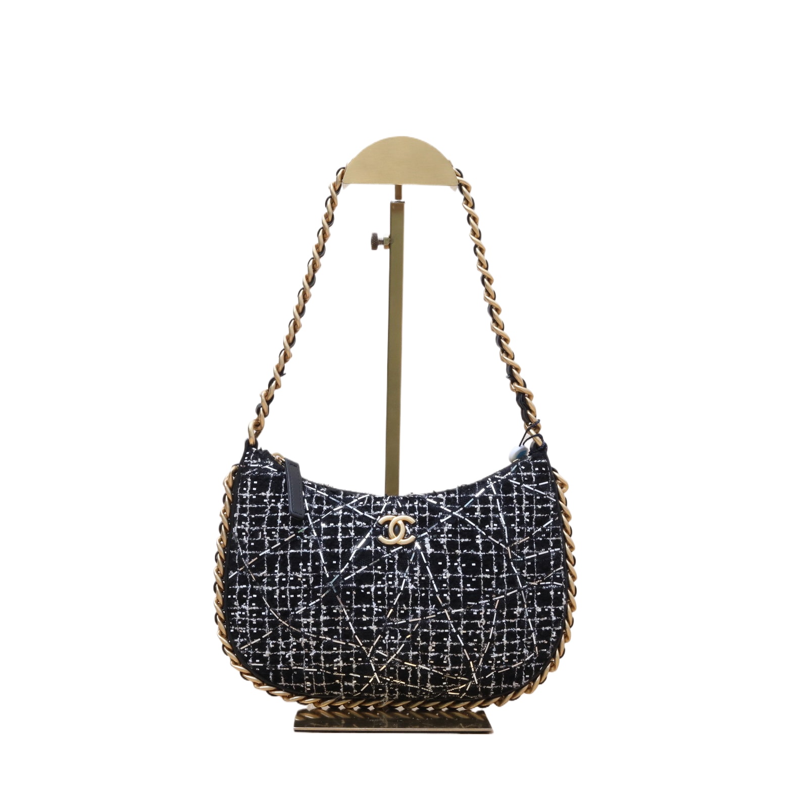 CHANEL 23B Leather-Threaded Chain Edge Hobo Shoulder and Crossbody Bag with Single Chain