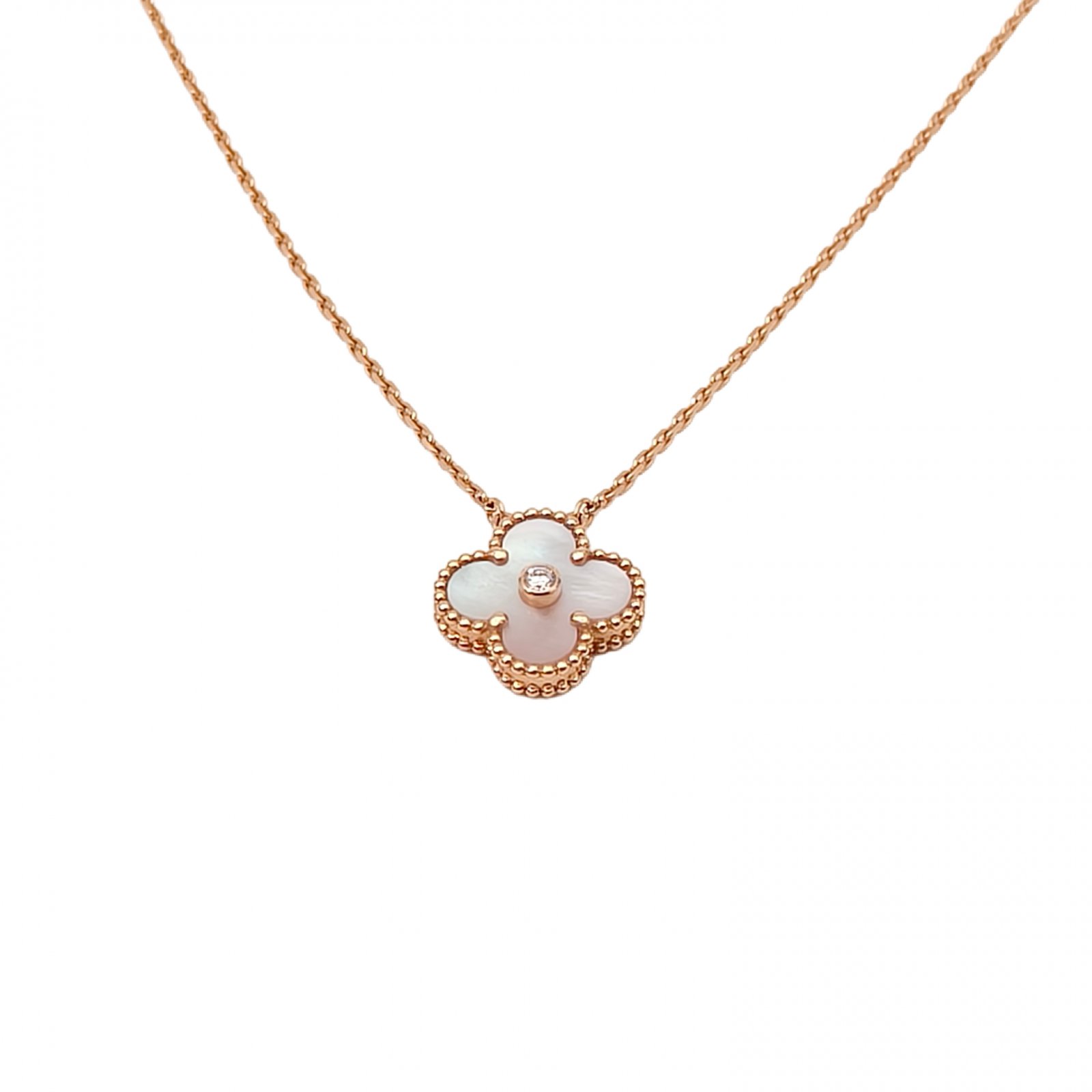 VAN CLEEF&ARPELS Vintage Alhambra Medium Single Flower Necklace 2025 Christmas Edition Single Diamond 18K Rose Gold,Diamond