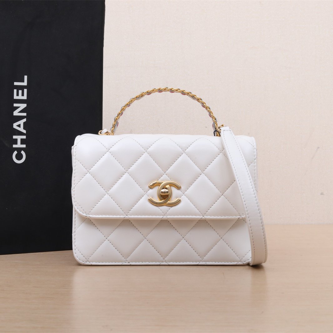 CHANEL White Chip Gold Hardware 23P CF Seasonal Edition Color-blocked Chain, Colorful Ribbon Chain Handle, Rainbow Handle Flap Bag