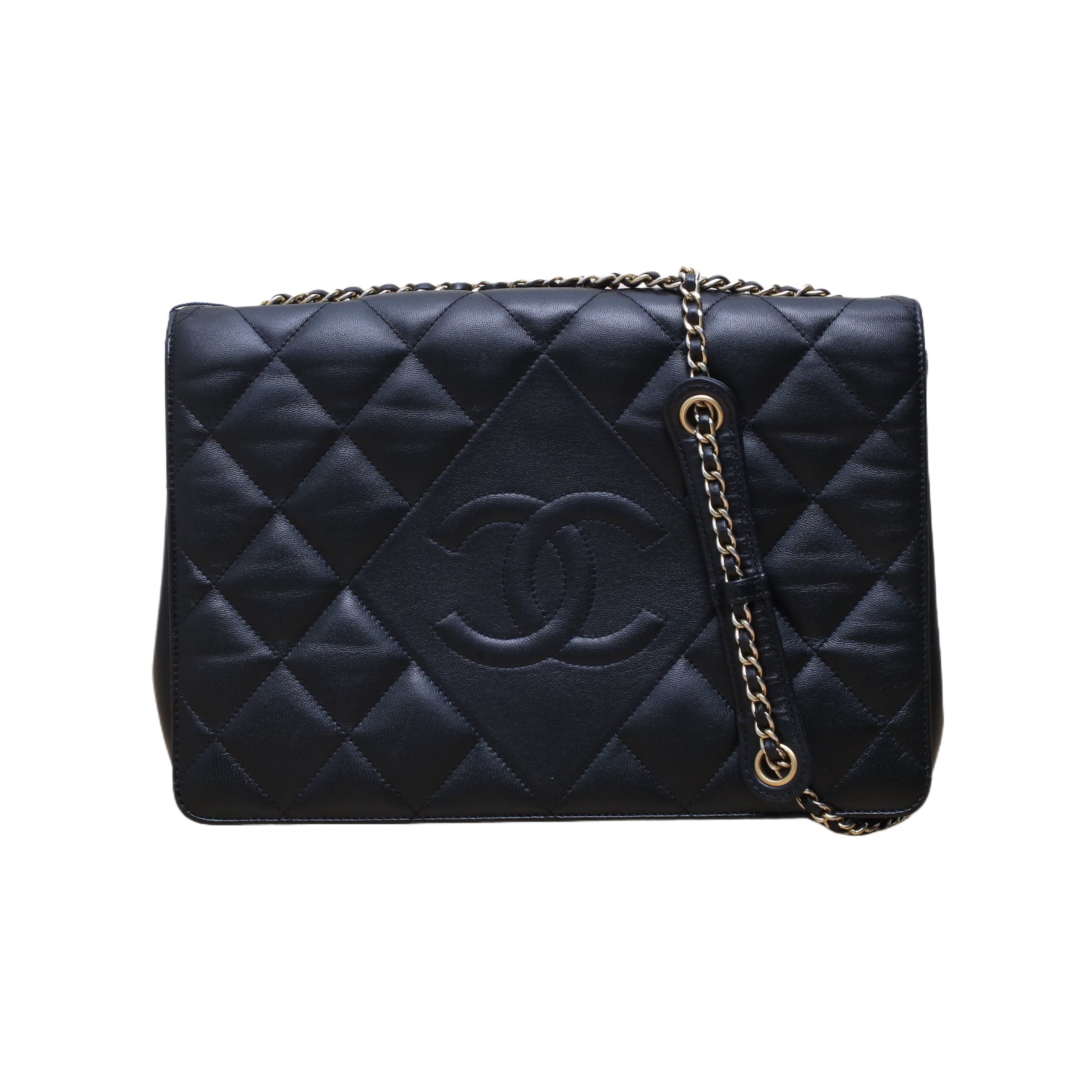 CHANEL Black Leather S 2014 Gold Hardware Quilted Double C Flap Shoulder Bag