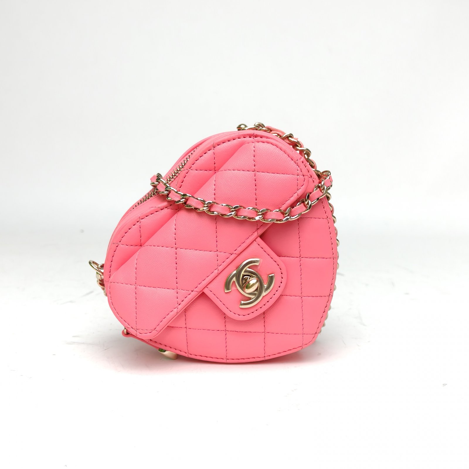 CHANEL Pink 2021 Light Gold Hardware 22SS Heart-shaped Crossbody Bag 13cm