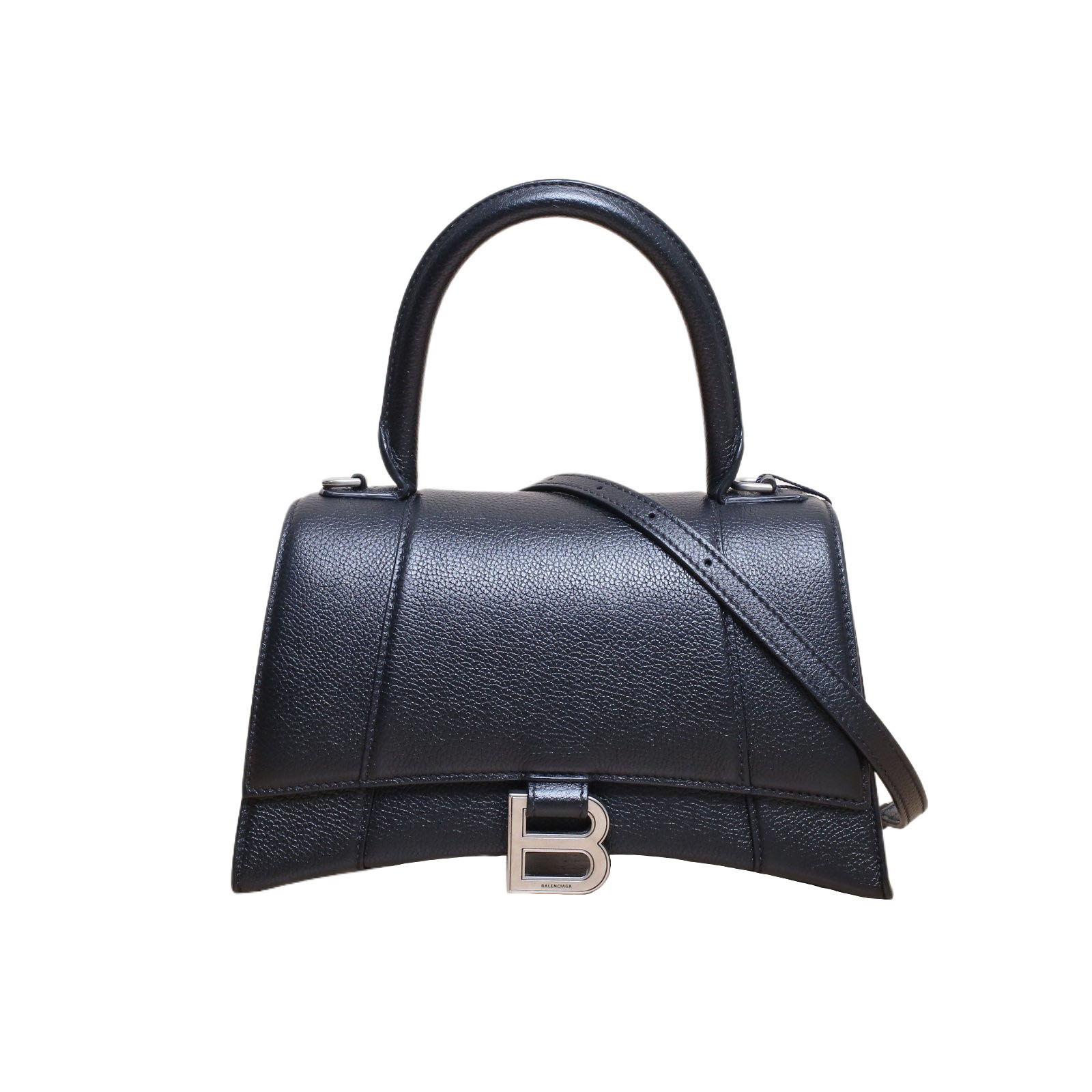 BALENCIAGA Crocodile Embossed Hourglass Handbag XS size Black Hardware
