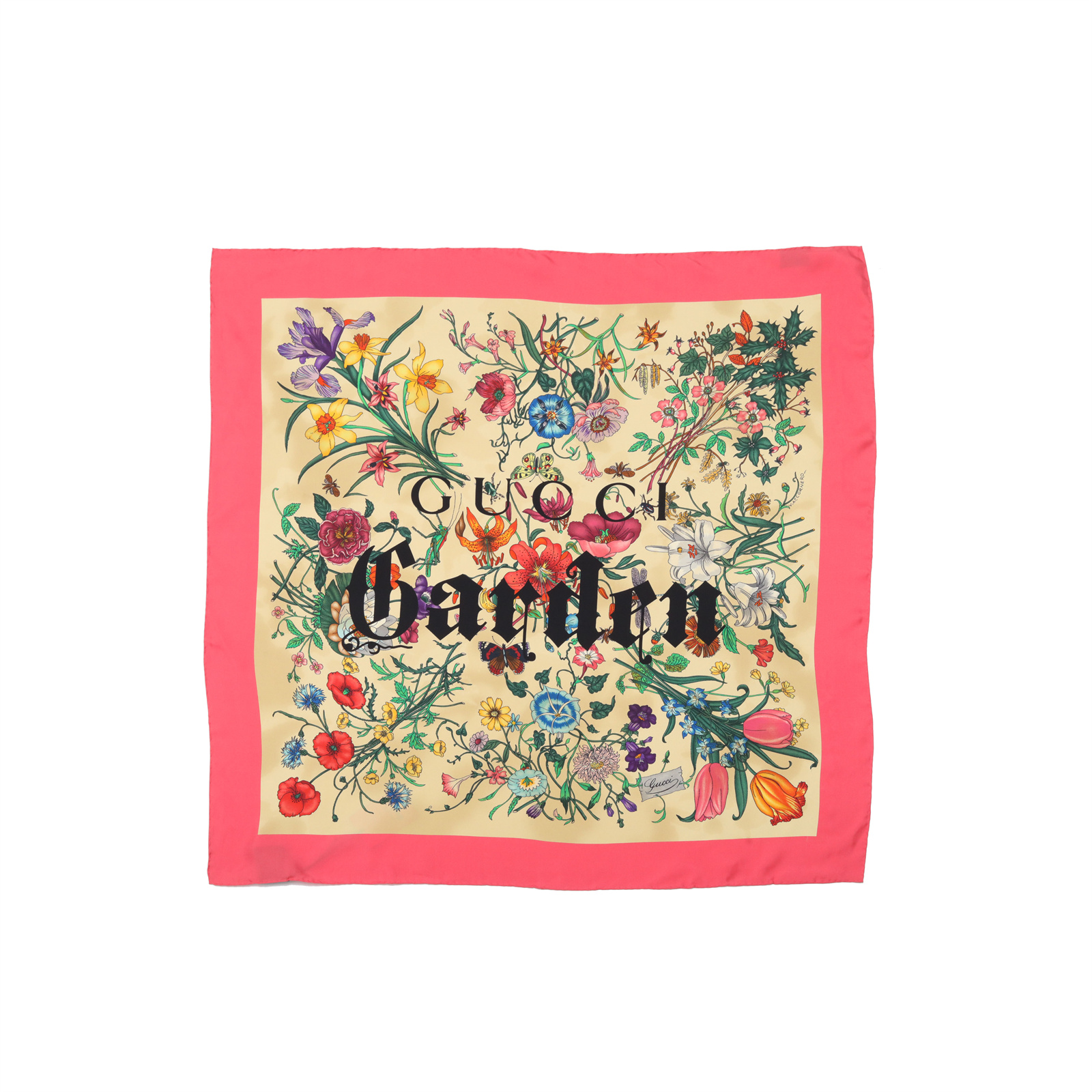 GUCCI GUCCI Floral Alphabet Print Silk Scarf Yellow