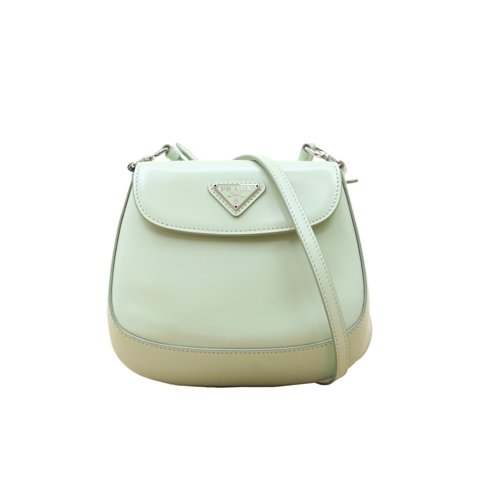 PRADA Light green leather C Cleo flap Shoulder Bag 18cm