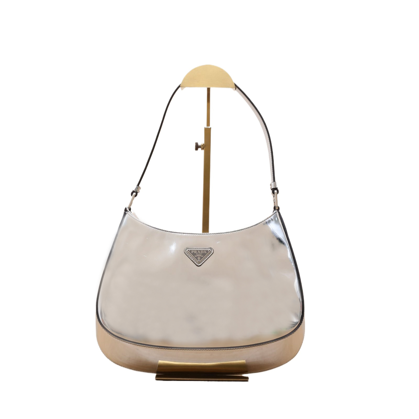 PRADA White Sliver Hardware Triangle Logo Chain Wallet on Chain (WOC) 17CM Adjustable Triangle Logo Buckle