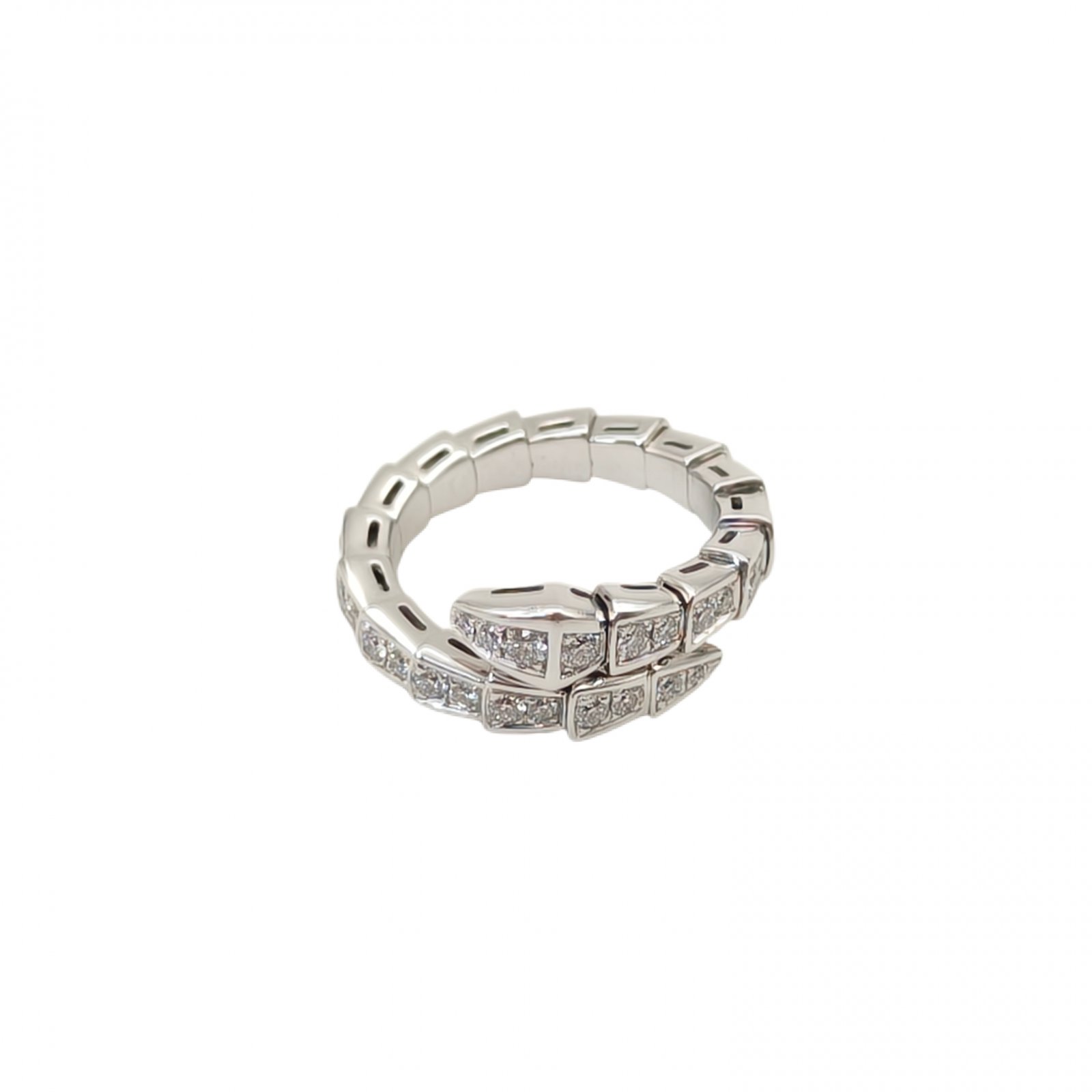 BVLGARI Serpenti 18K Gold Full Diamond Narrow Single Row Snake Ring 18K White Gold,Diamond