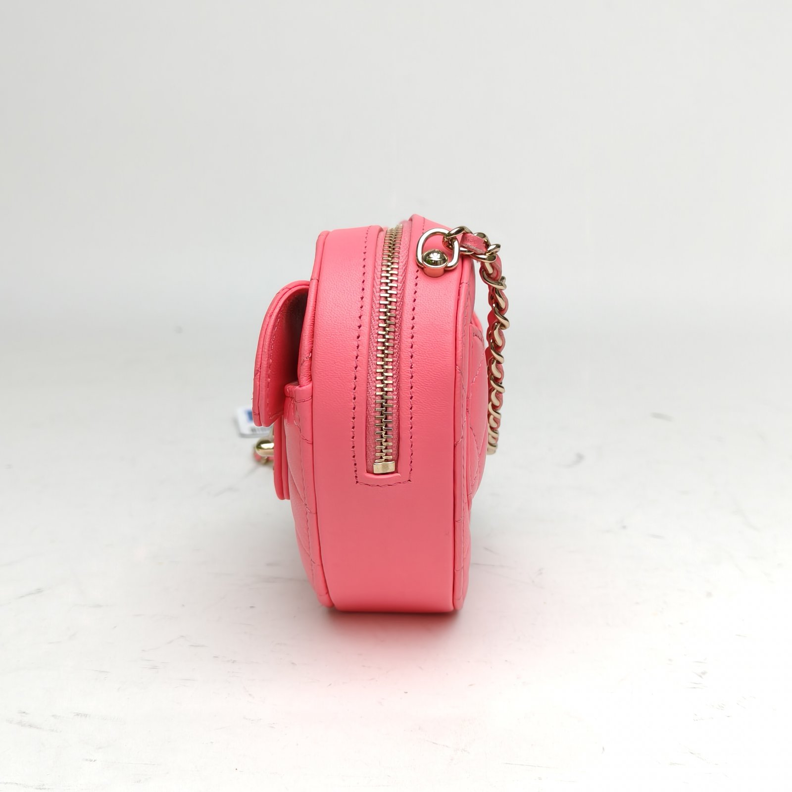 CHANEL Pink 2021 Light Gold Hardware 22SS Heart-shaped Crossbody Bag 13cm