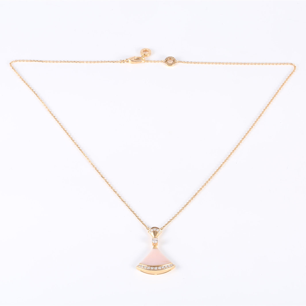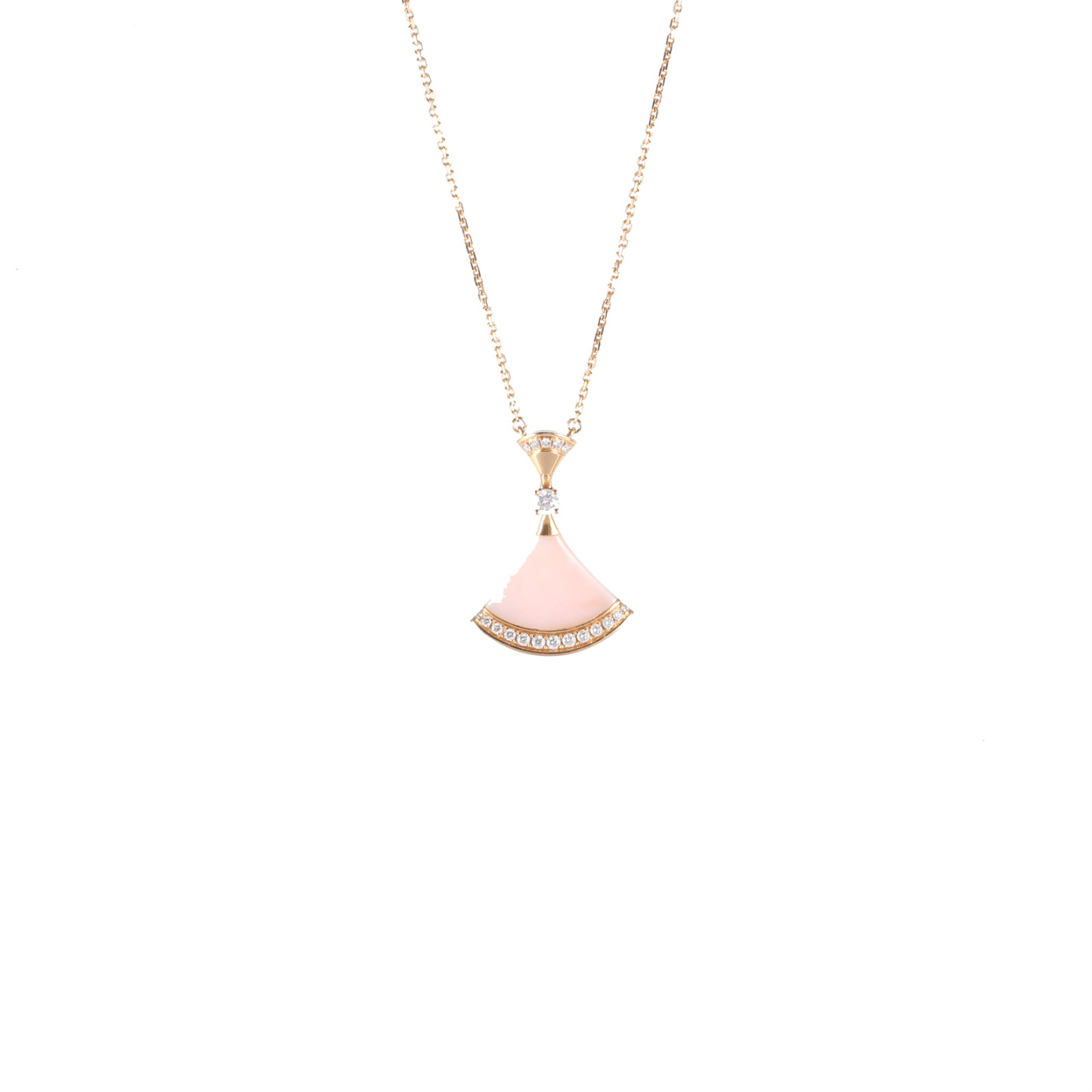 BVLGARI DIVAS DREAM Diamond Inlaid Fan Edge Necklace Medium Pink Opal 18K Rose Gold,Diamond