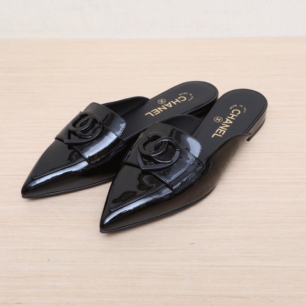 CHANEL Black 25C Pointed Toe Double C Heart Sandals Size 37