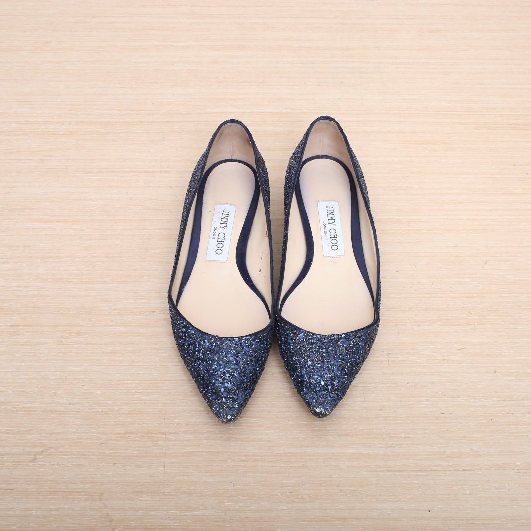 JIMMYCHOO Blue Sequin Flats 36.5