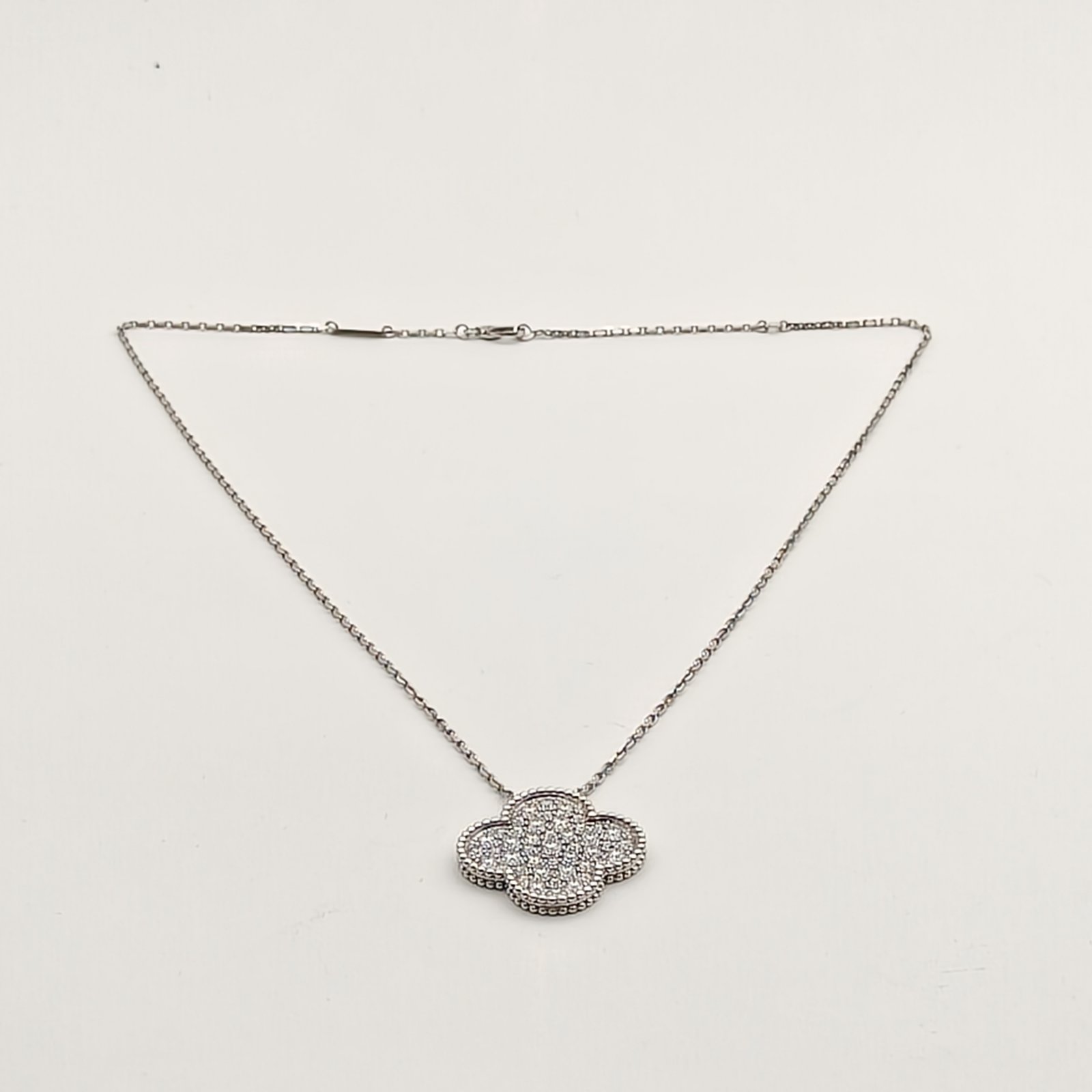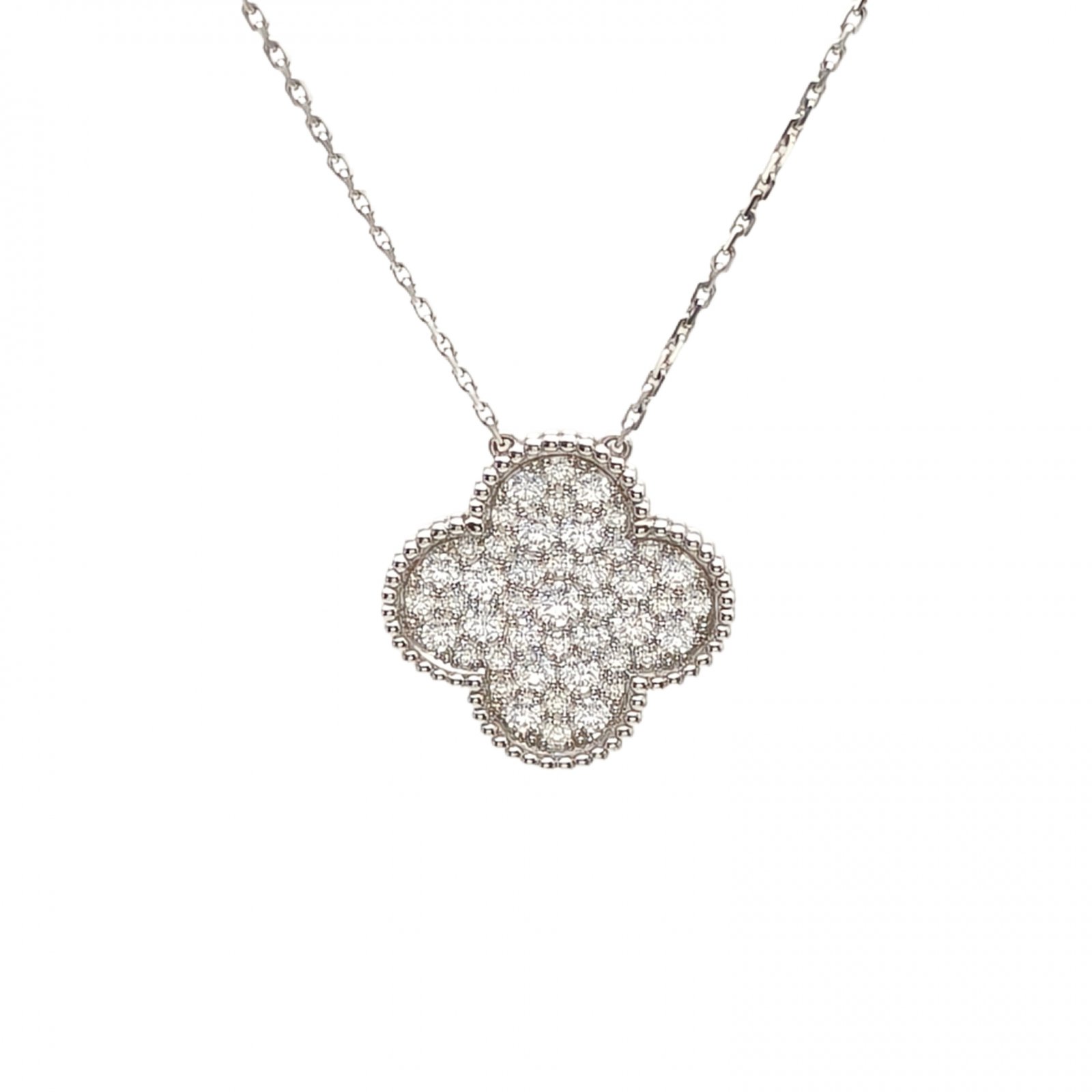 VAN CLEEF&ARPELS Magic Alhambra Large Single Flower Necklace Full Diamonds Diamond,18K White Gold