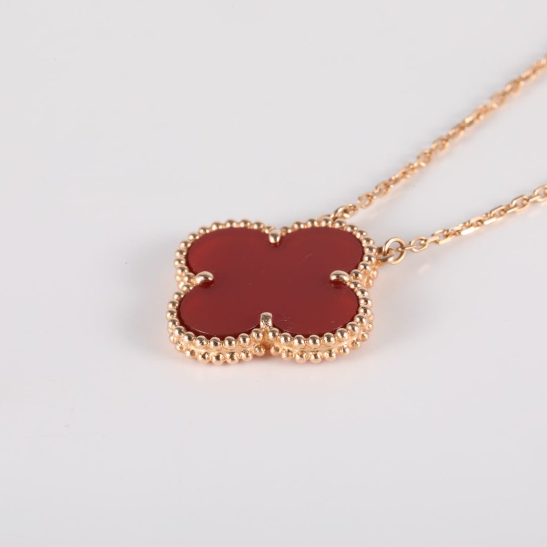 VAN CLEEF&ARPELS Vintage Alhambra Medium Single Flower Necklace 18K Gold,Carnelian