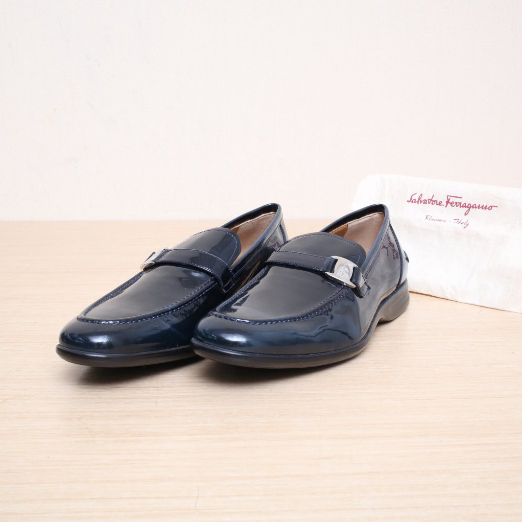 FERRAGAMO Ferragamo British patent leather shoes 43151 Blue Black 38