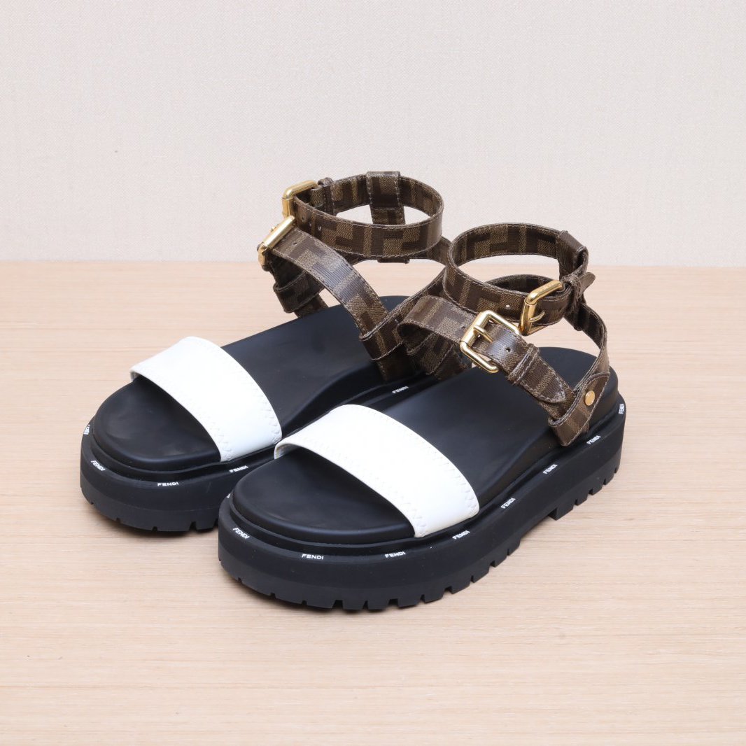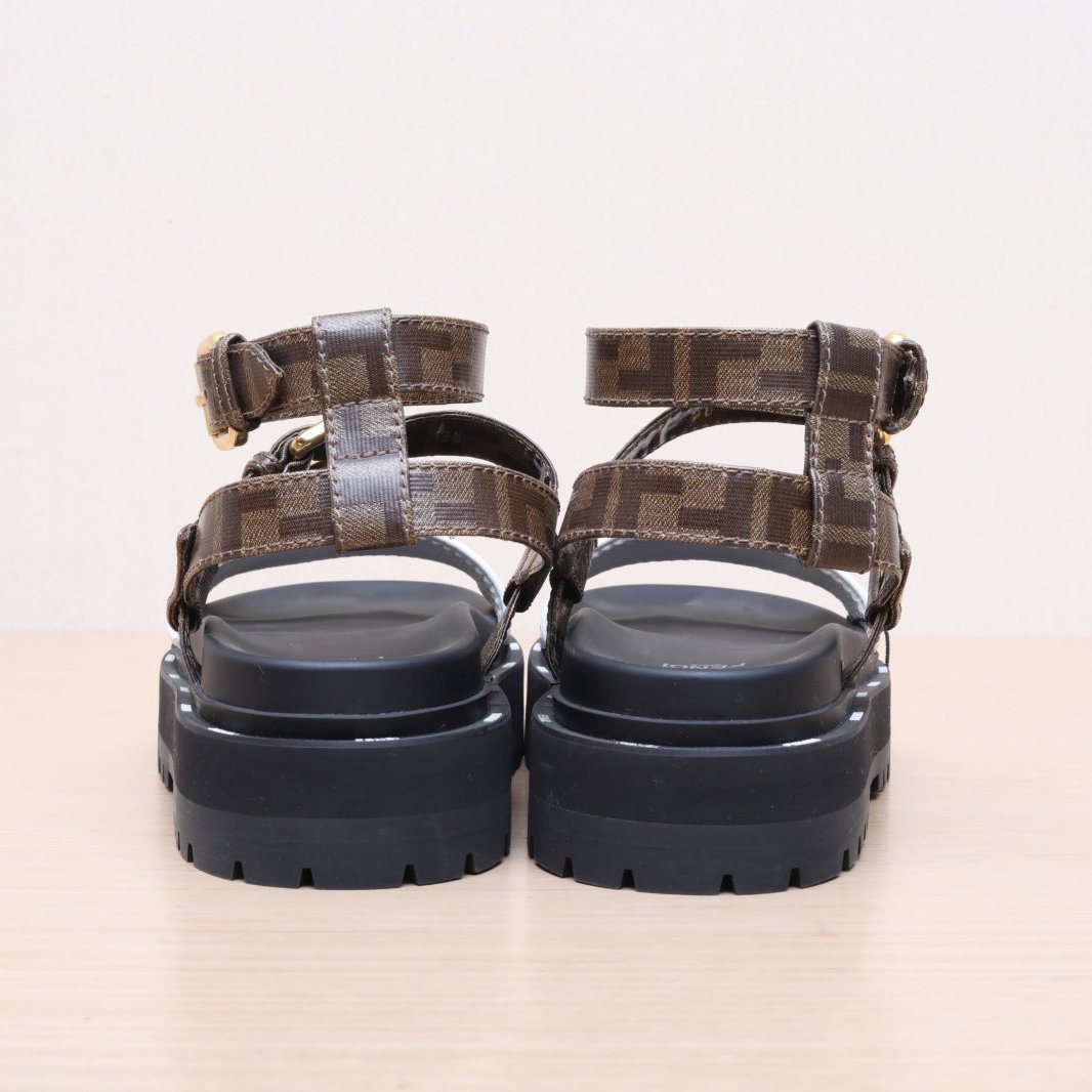 FENDI Color Block FENDI Monogram Thick Flat Sandals 38