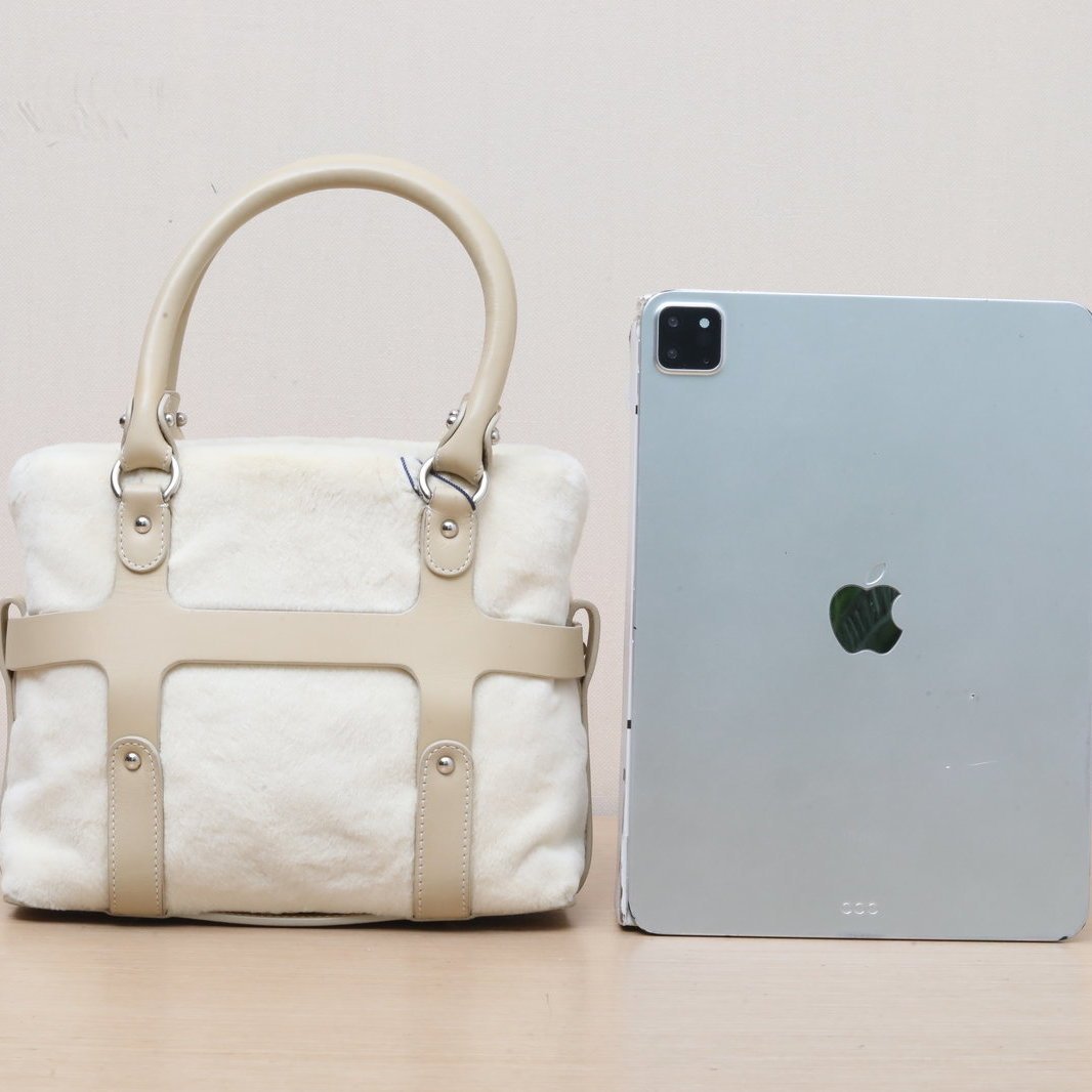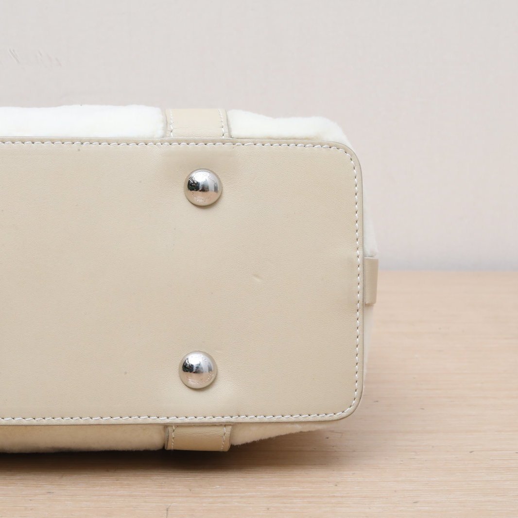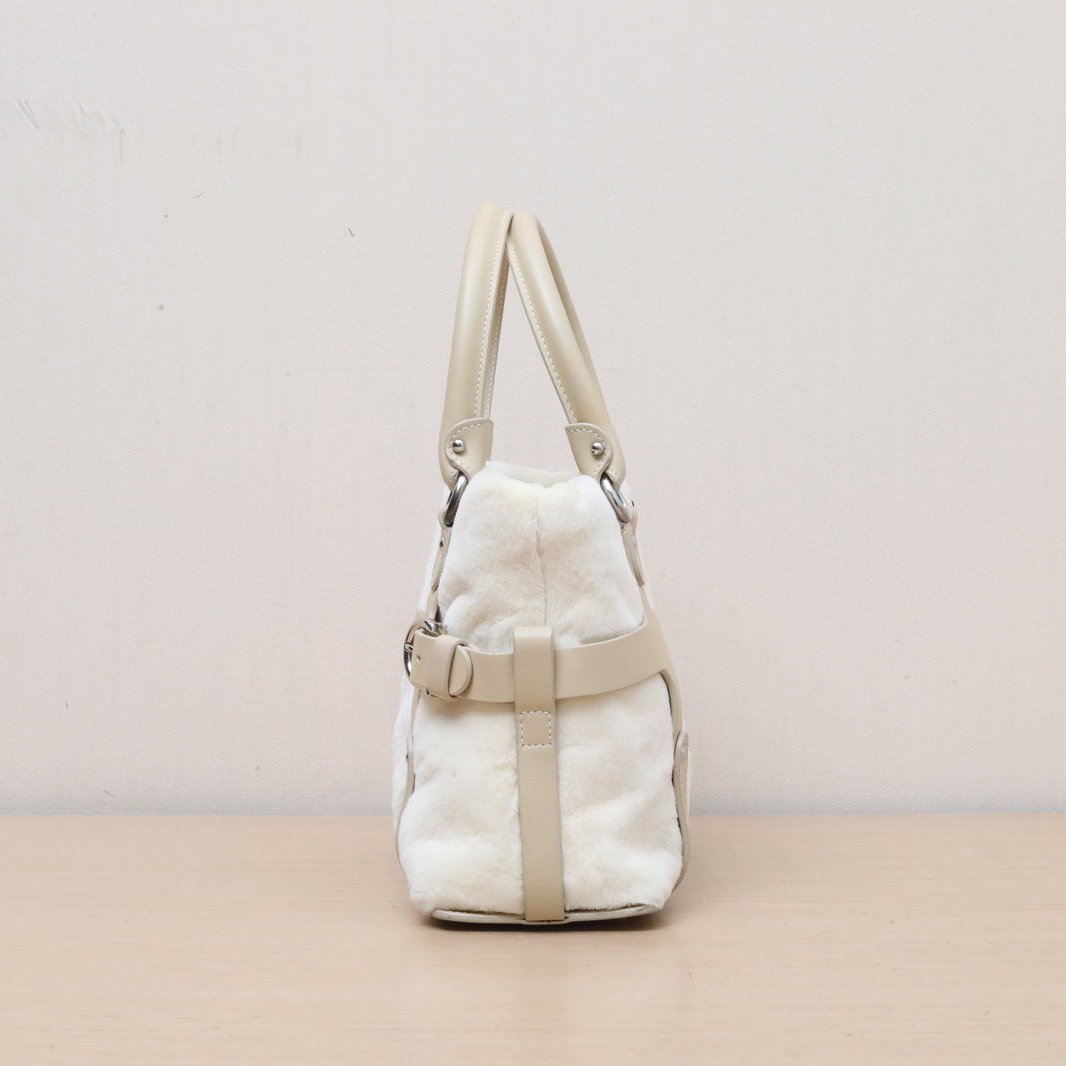 Salvatore Ferragamo Off - white Velvet Salvatore Ferragamo Furry Handbag with Detachable Shoulder Strap