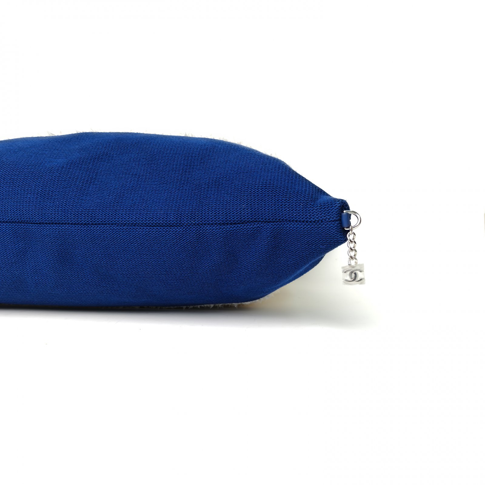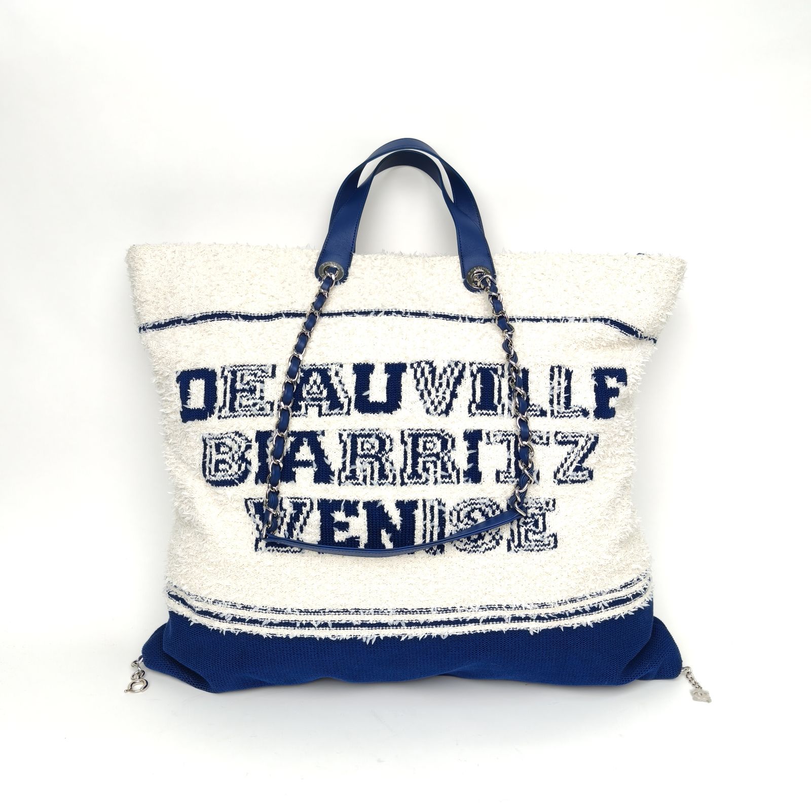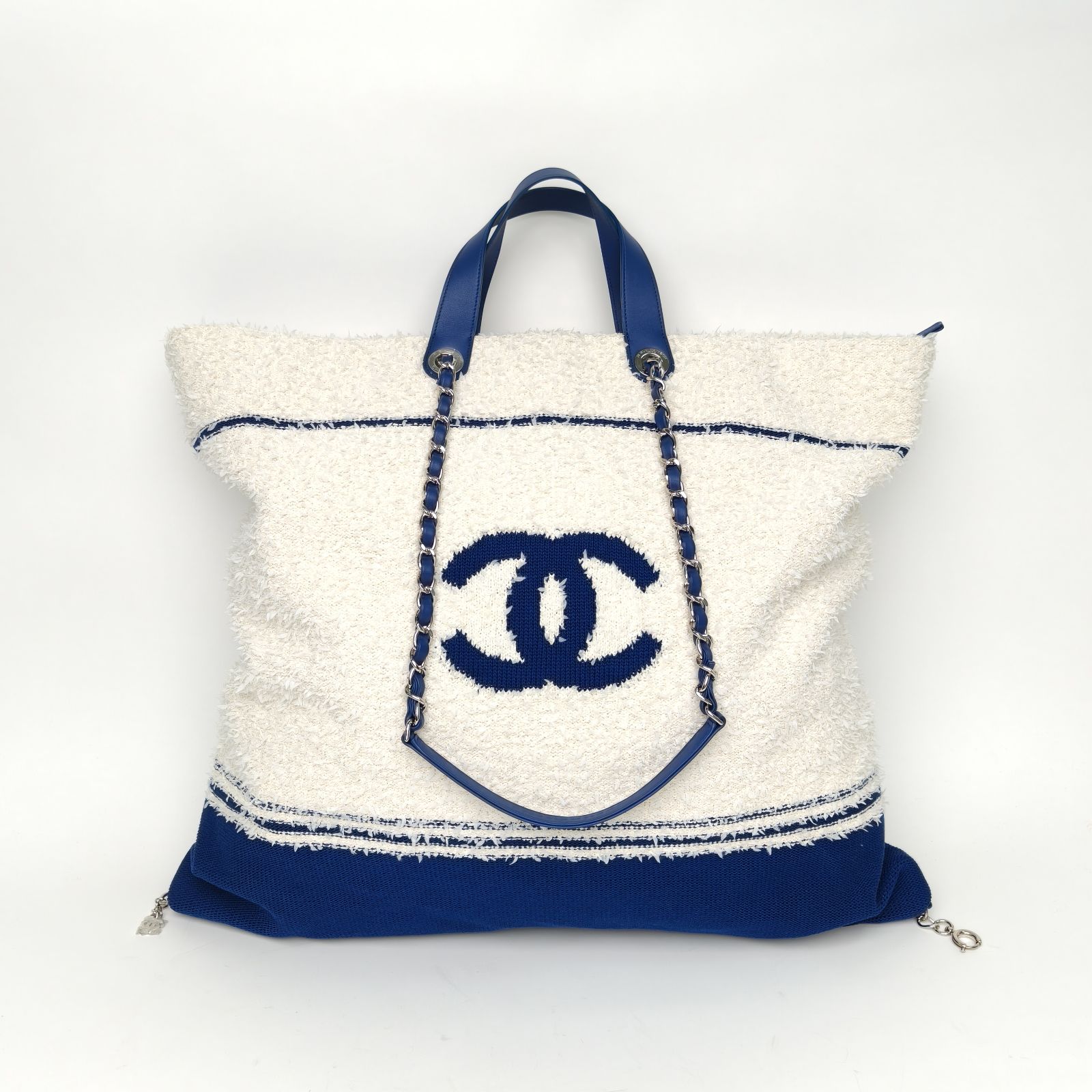 CHANEL Color Block Wool 2019 Sliver Hardware Letter Logo Terry Cloth Beach Bag With Handle Shopping Bag Large