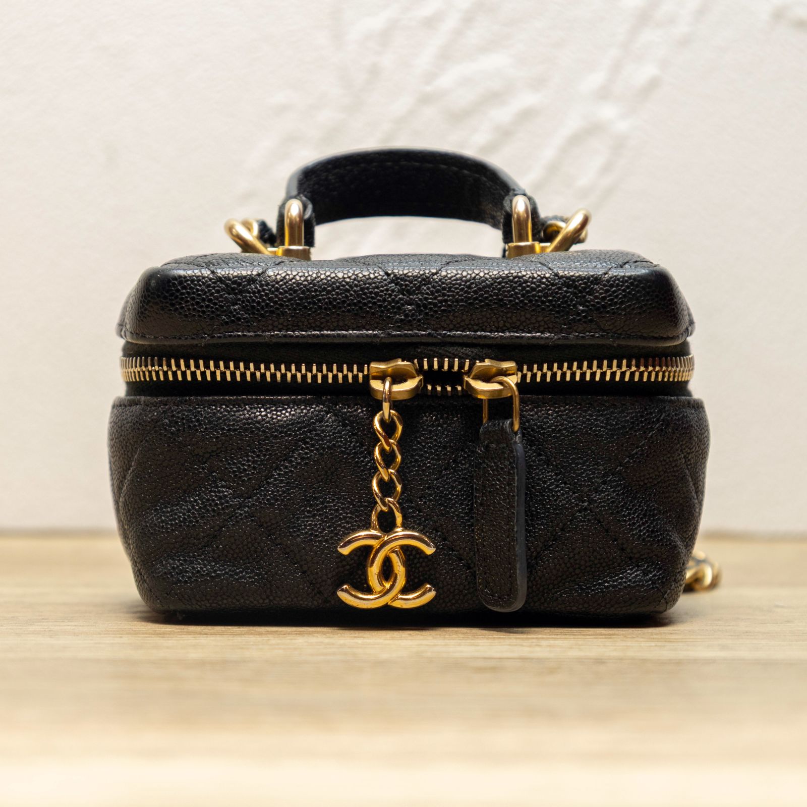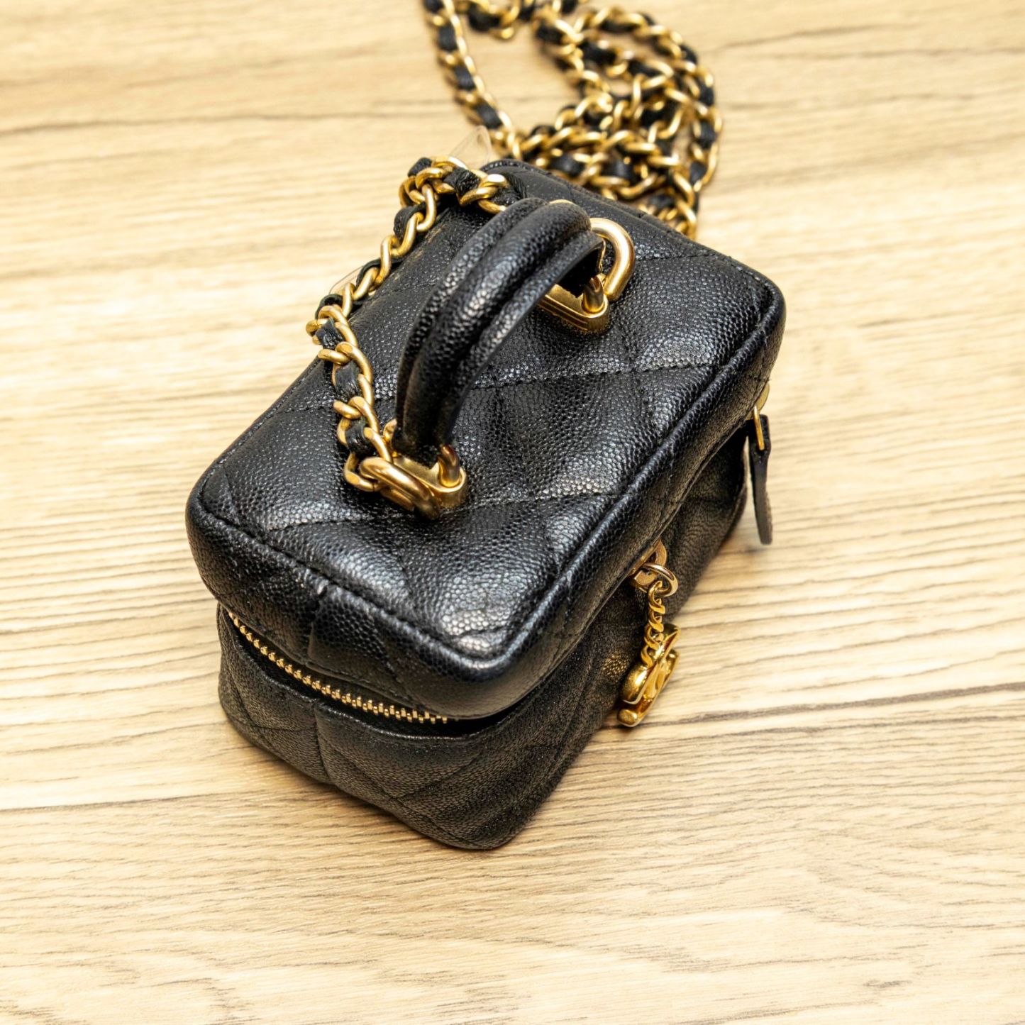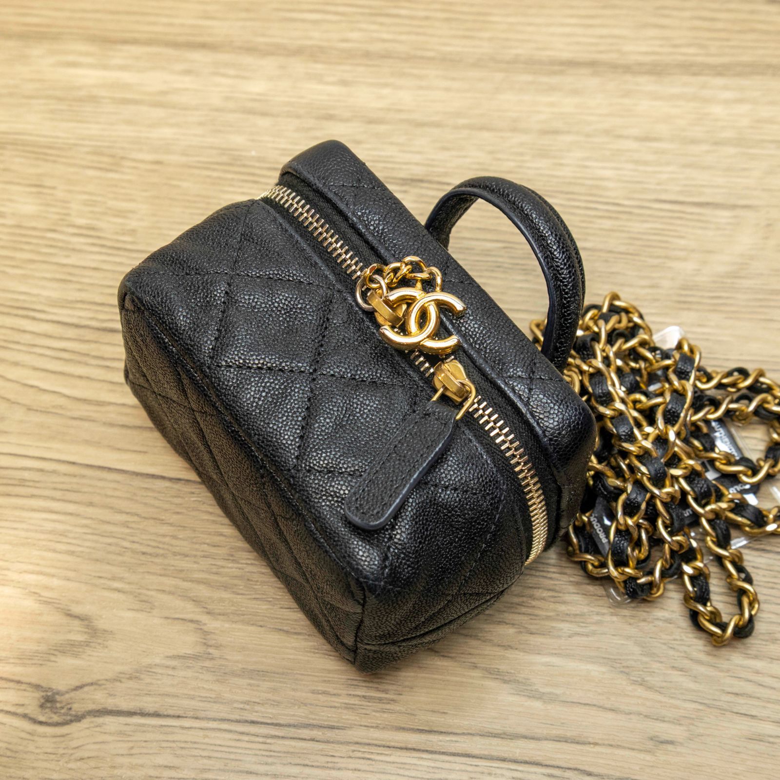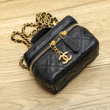 CHANEL CHANEL Black and Gold MINI Cosmetic Bag 2021