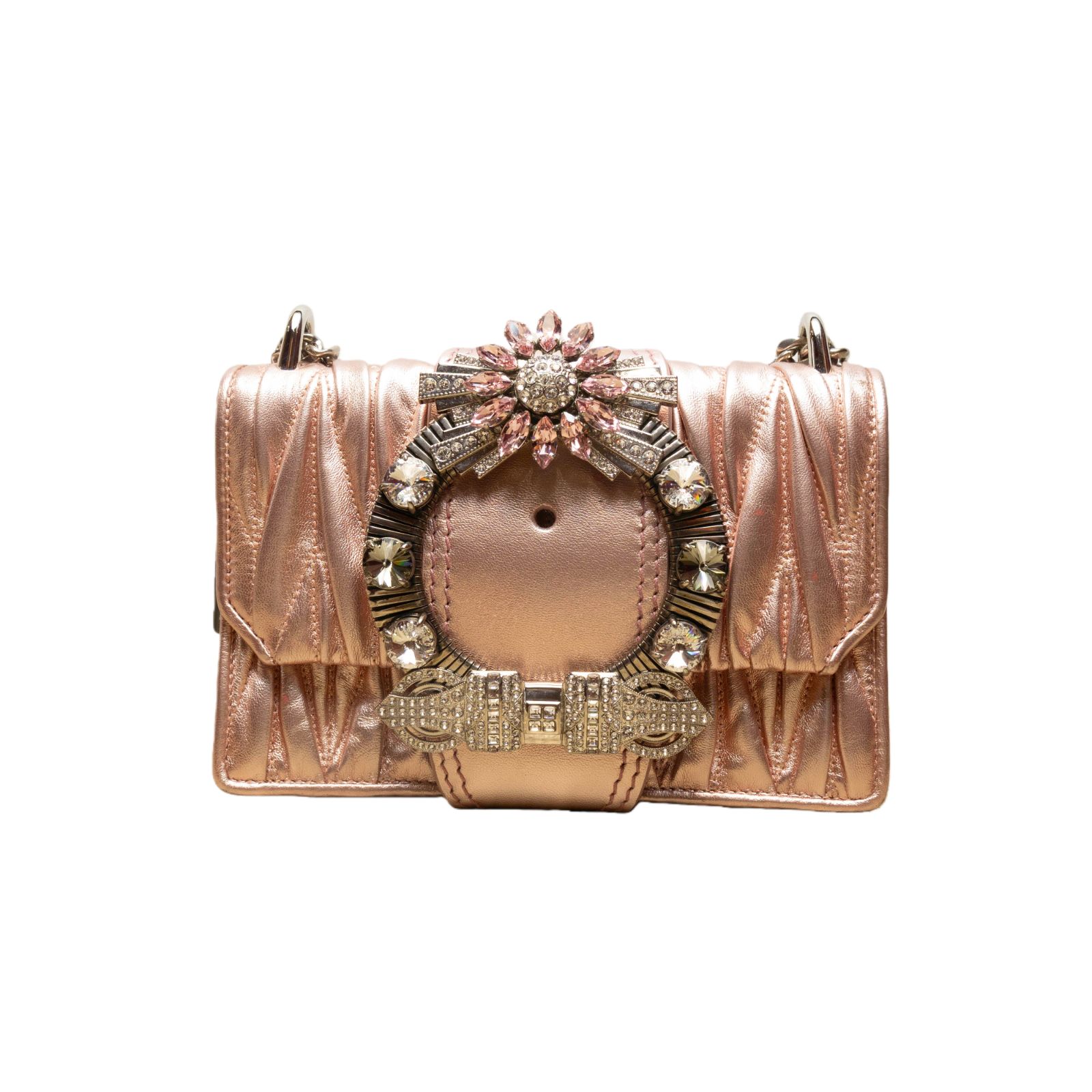 MIUMIU MIUMIU Laby Series Pink Ruffled Gemstone Bag with Sunflower Diamond Buckle
