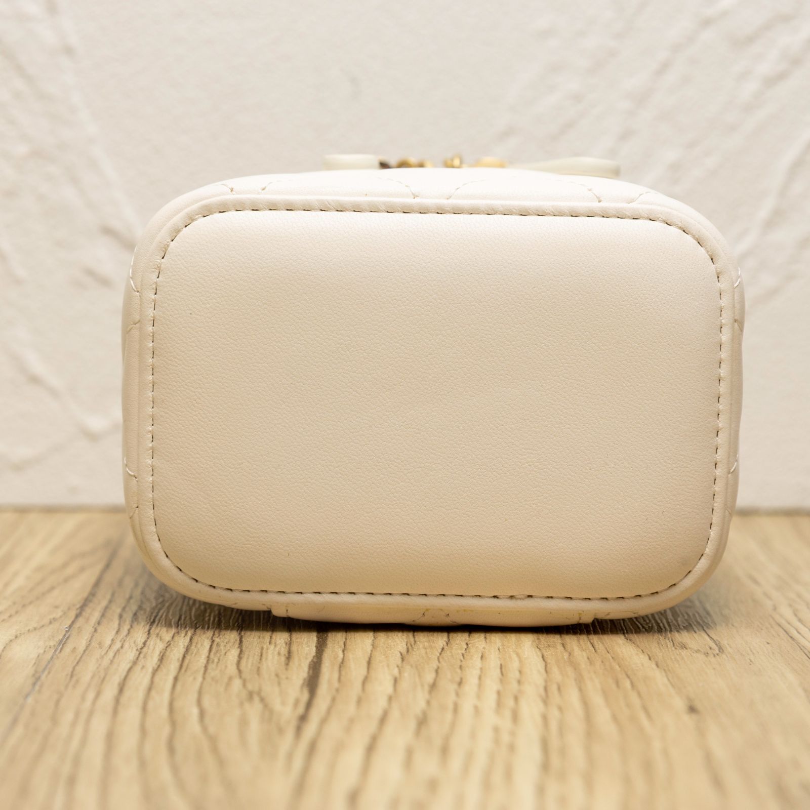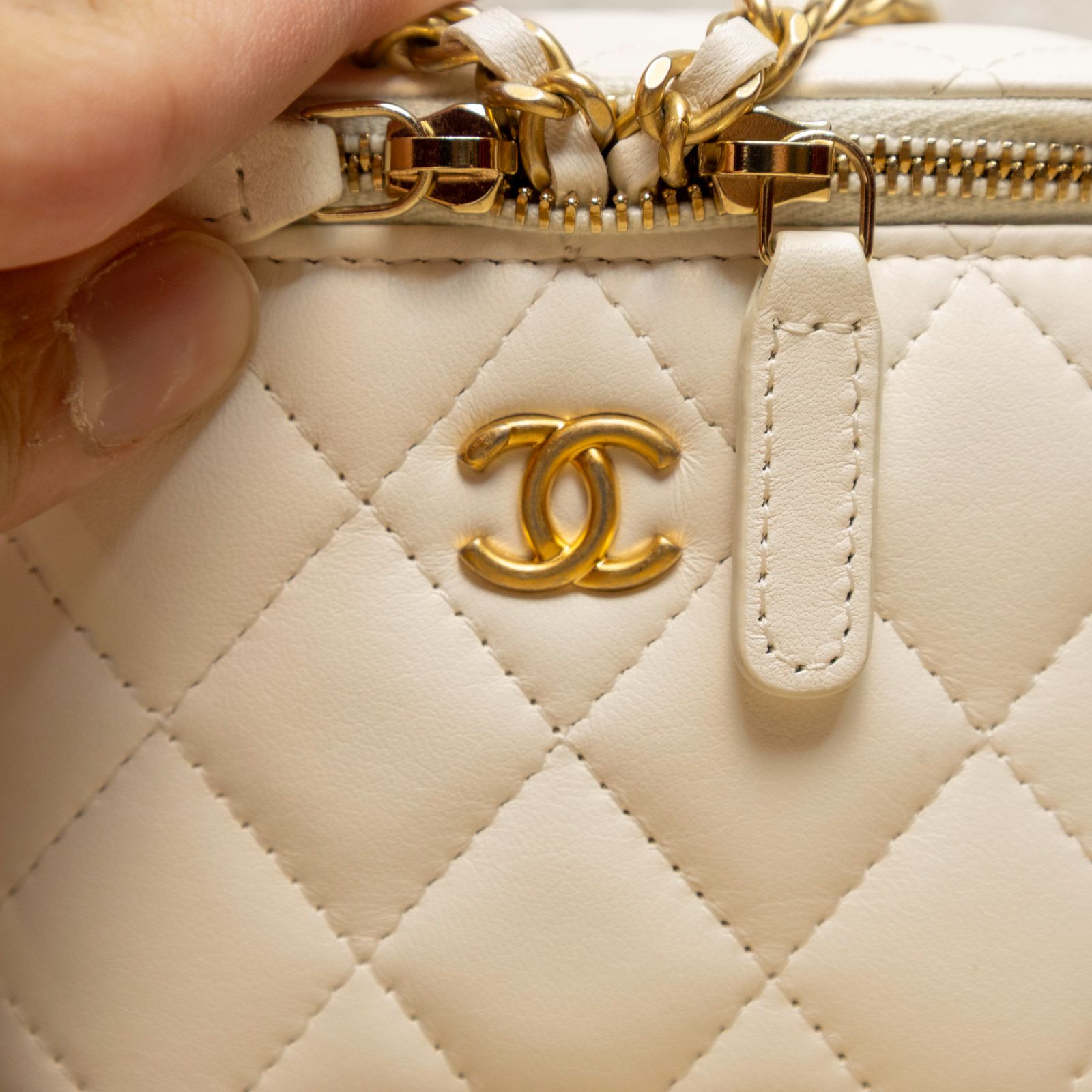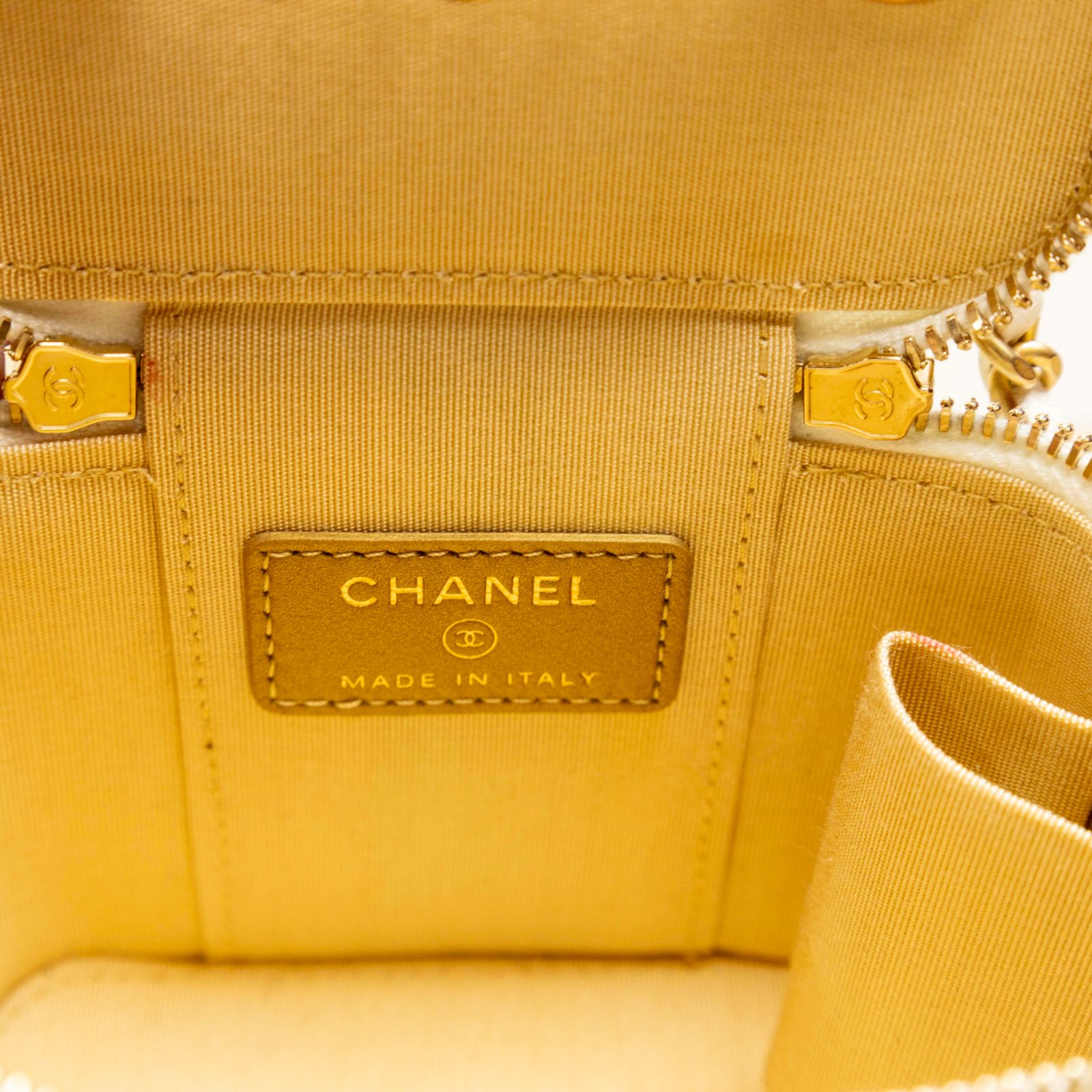 CHANEL White Square Cosmetic Bag with Mirror, 11cm, Gold Ball, 2021