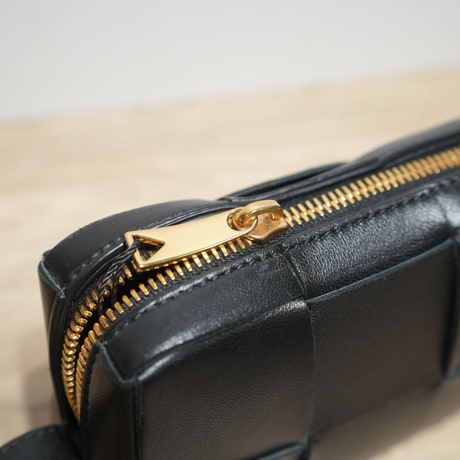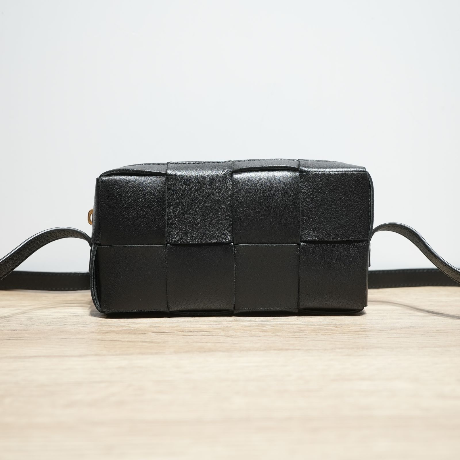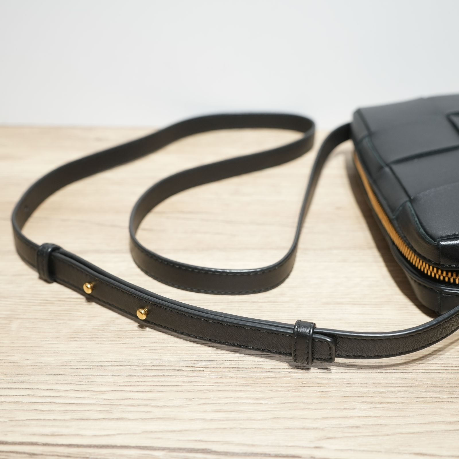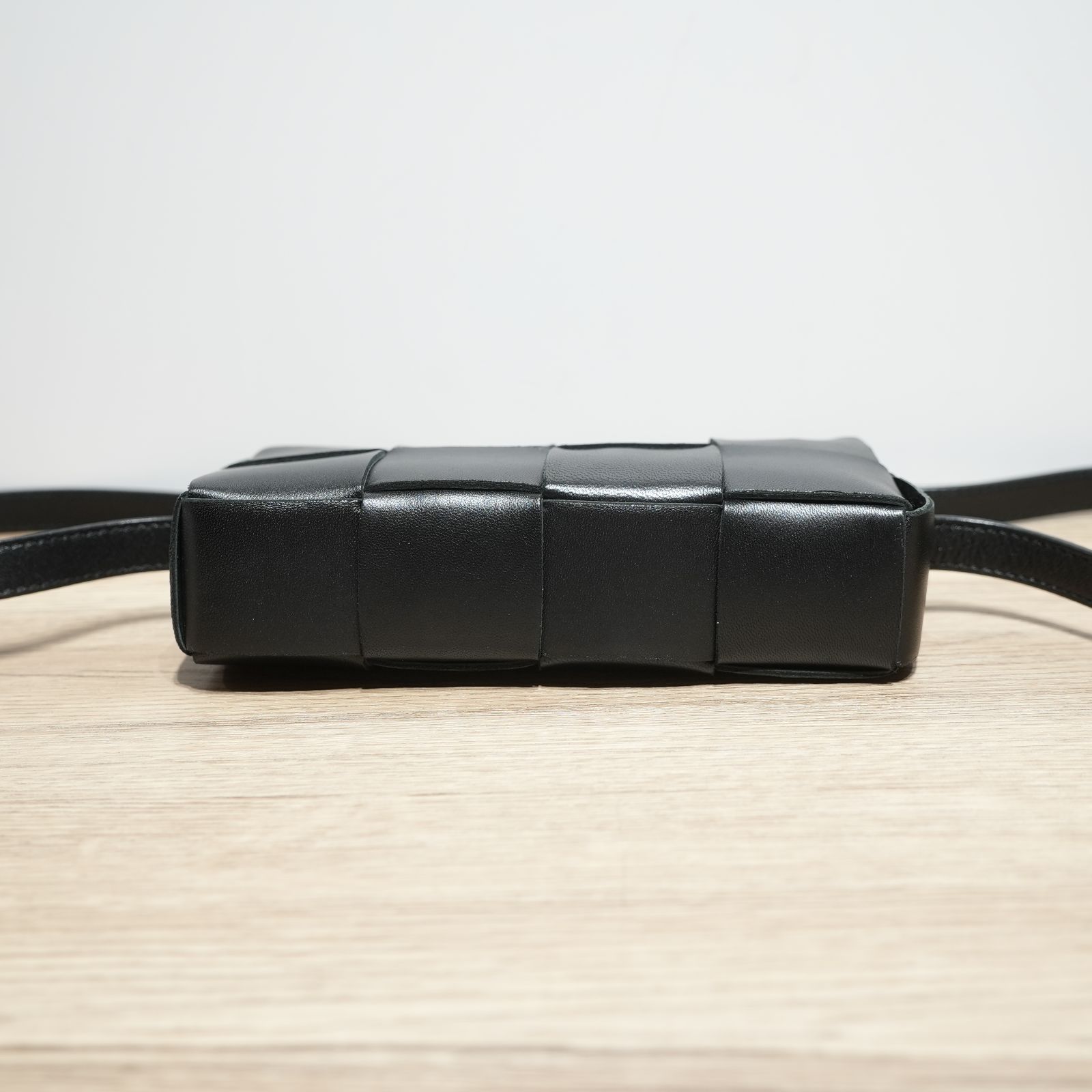 BOTTEGA VENETA BV Three Compartments Black Sheepskin Crossbody Bag