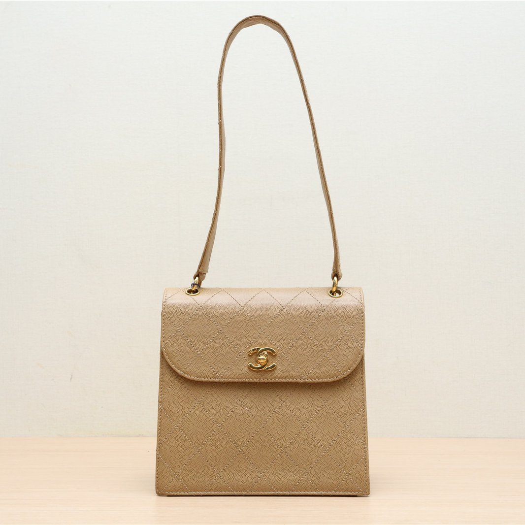 CHANEL Vintage Kelly Shoulder Bag, Milk Tea Color, 1999, Gold Hardware