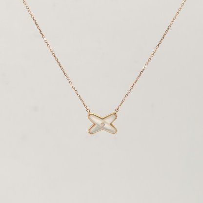 CHAUMET Juxe De Liens Pearl Mother-of-Pearl Single Diamond Small Fork Necklace 18K Rose Gold,Mother of Pearl,Diamond