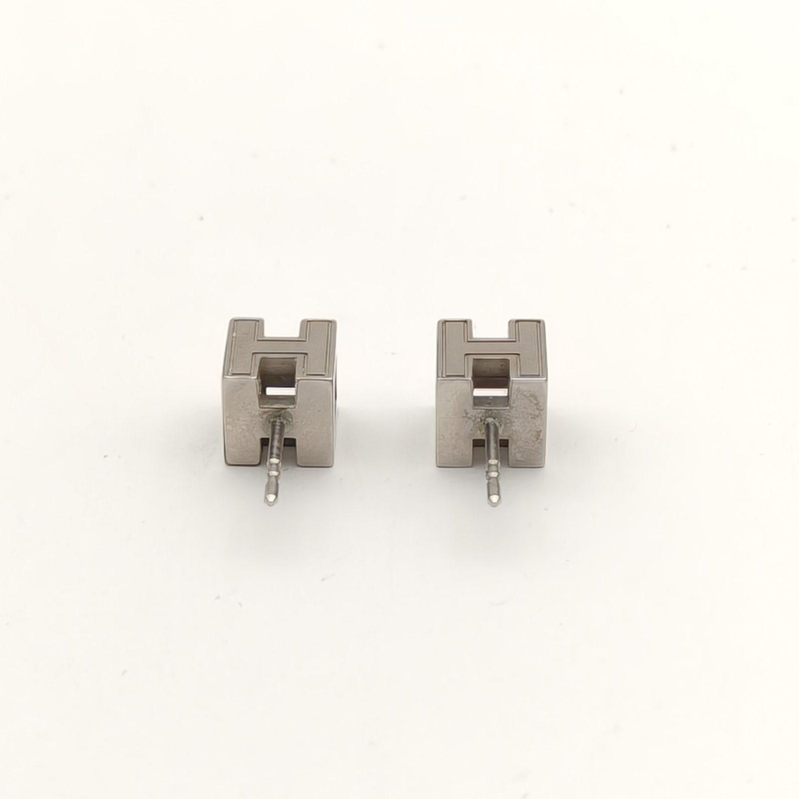 HERMES H Square Diamond Stud Earring Alloy