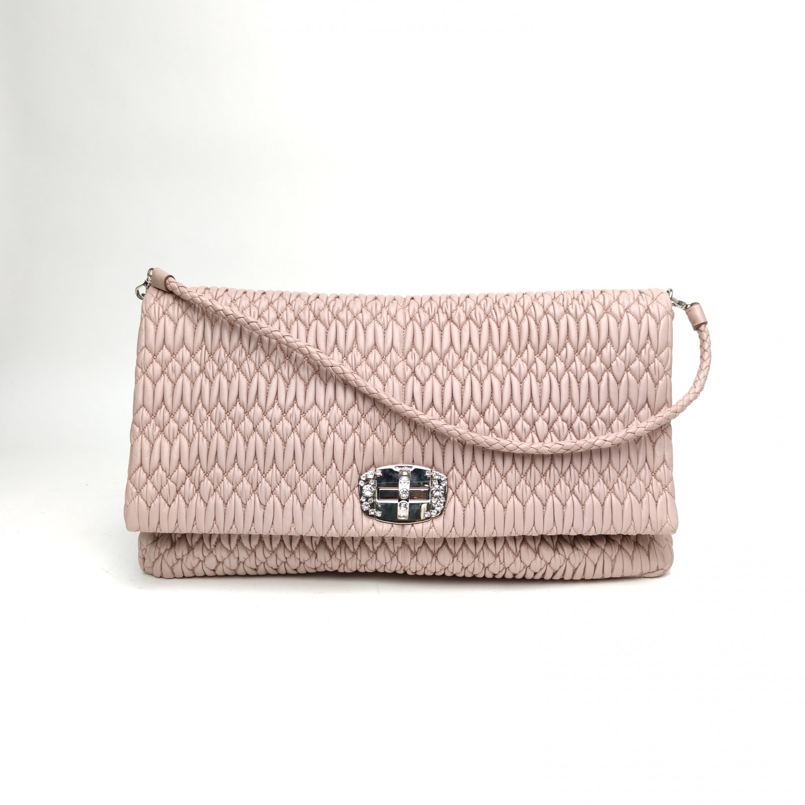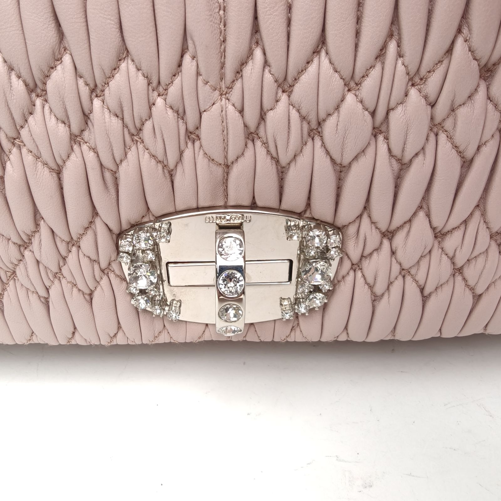 MIUMIU Pink Pleated miumiu with diamonds Shoulder Bag with Detachable Diamond Chain maxi 40cm