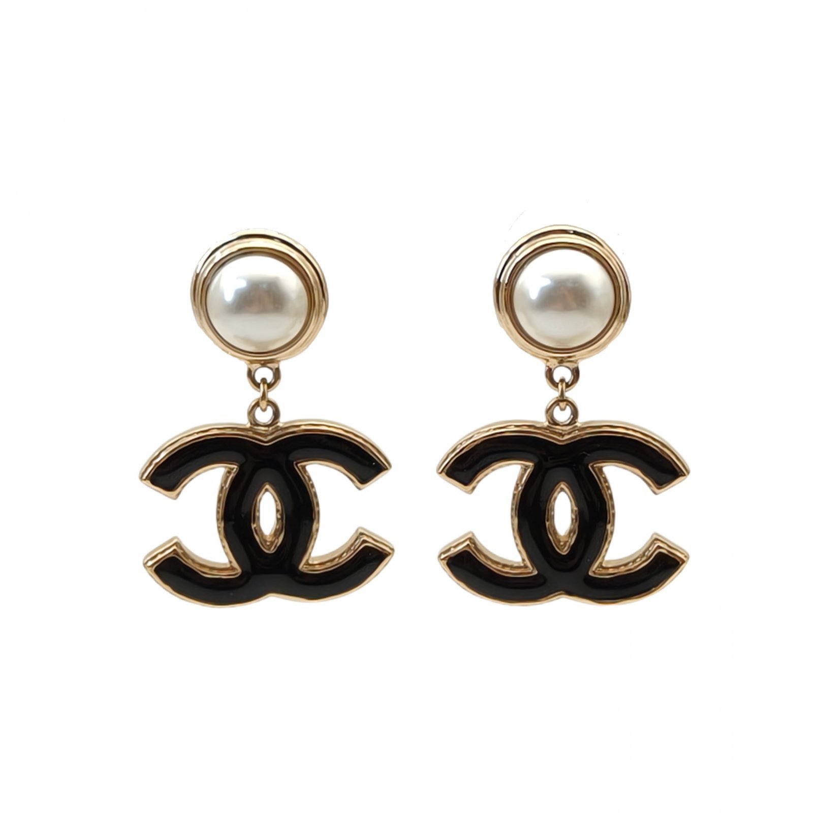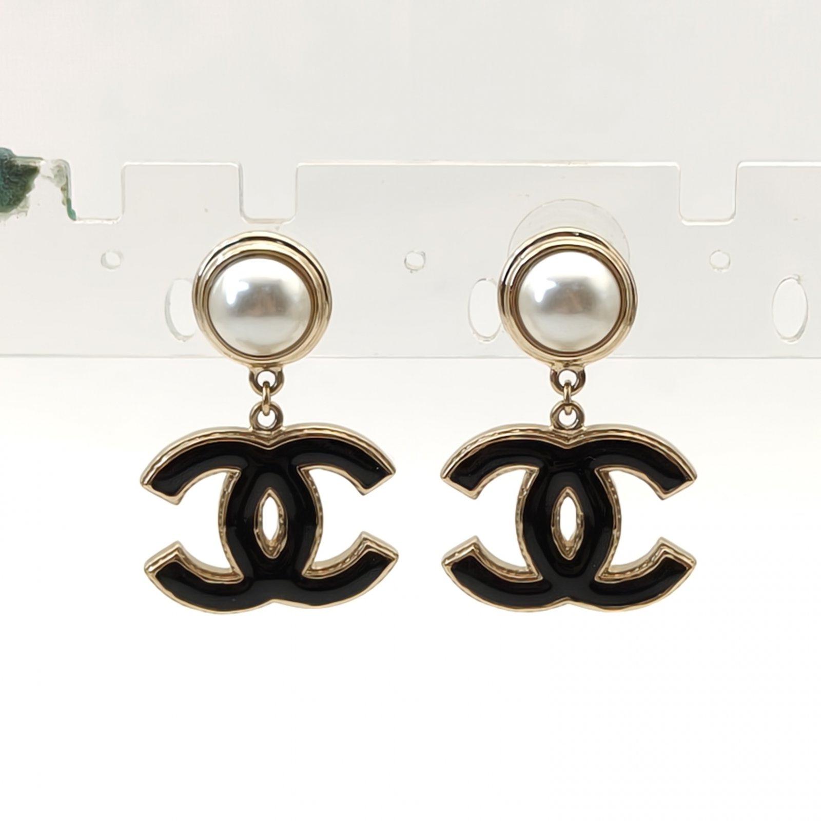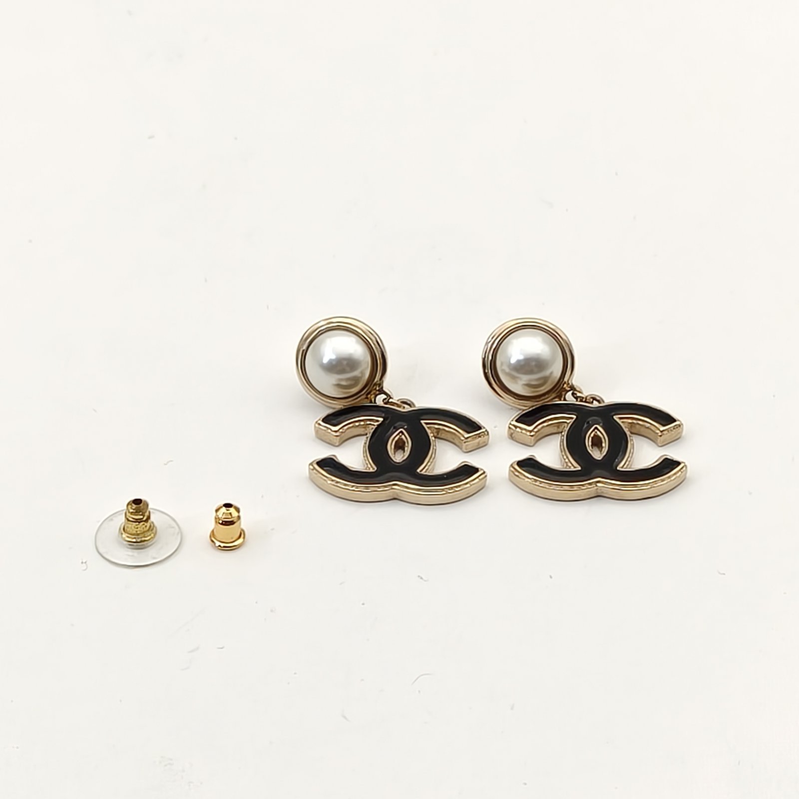 CHANEL 23V Black Enamel Pearl Earrings Alloy
