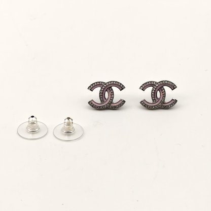 CHANEL 25B Double C Enamel Diamond Stud Earring Alloy
