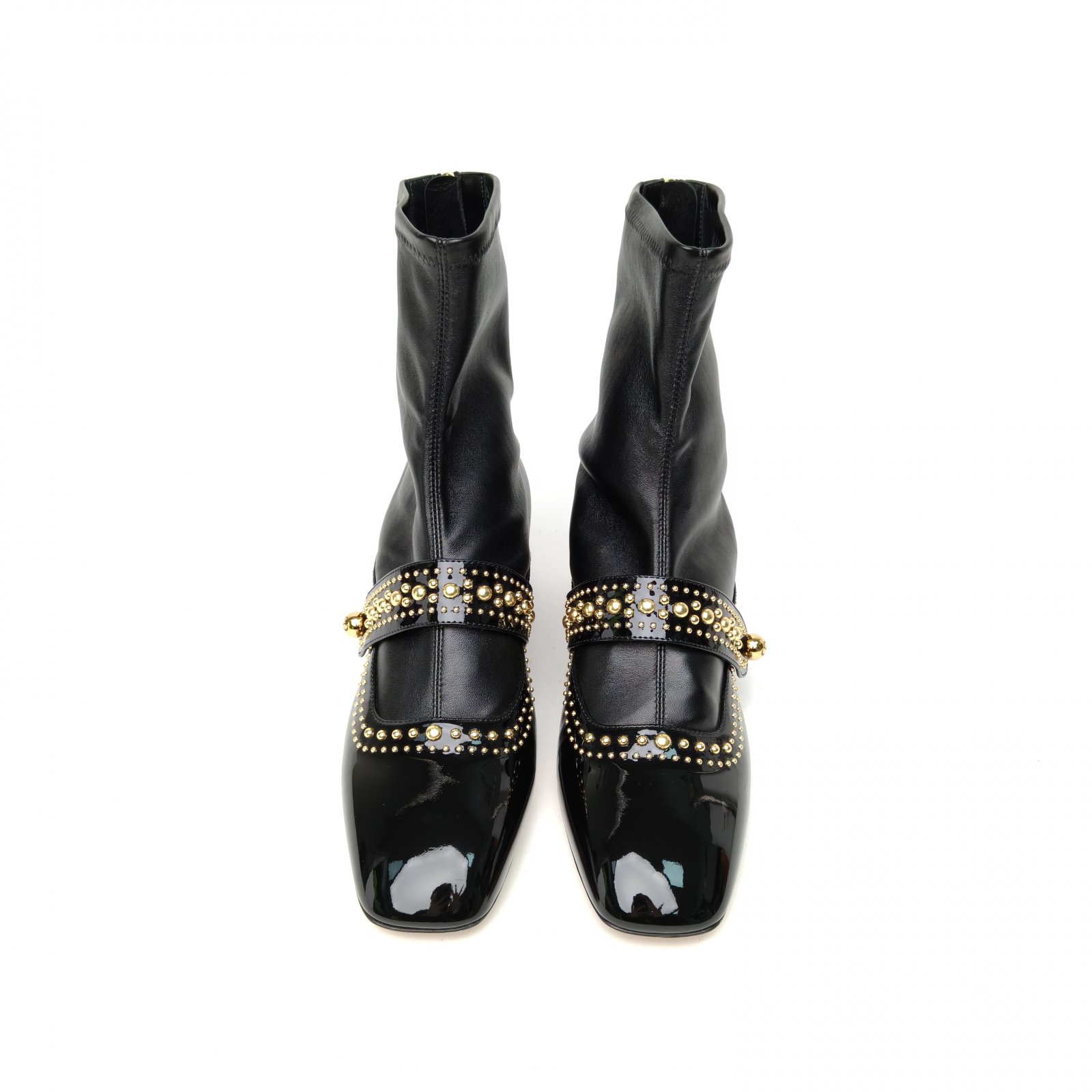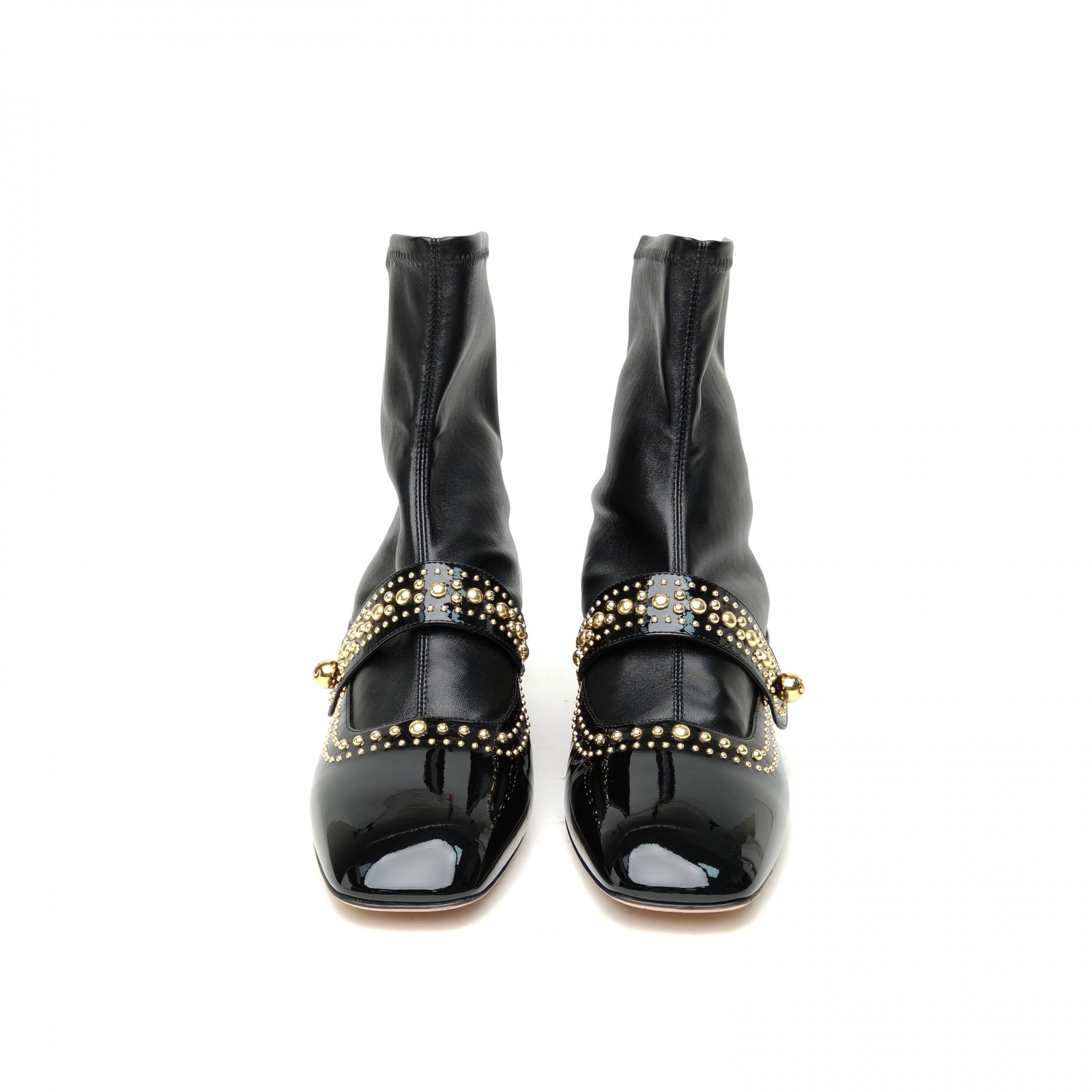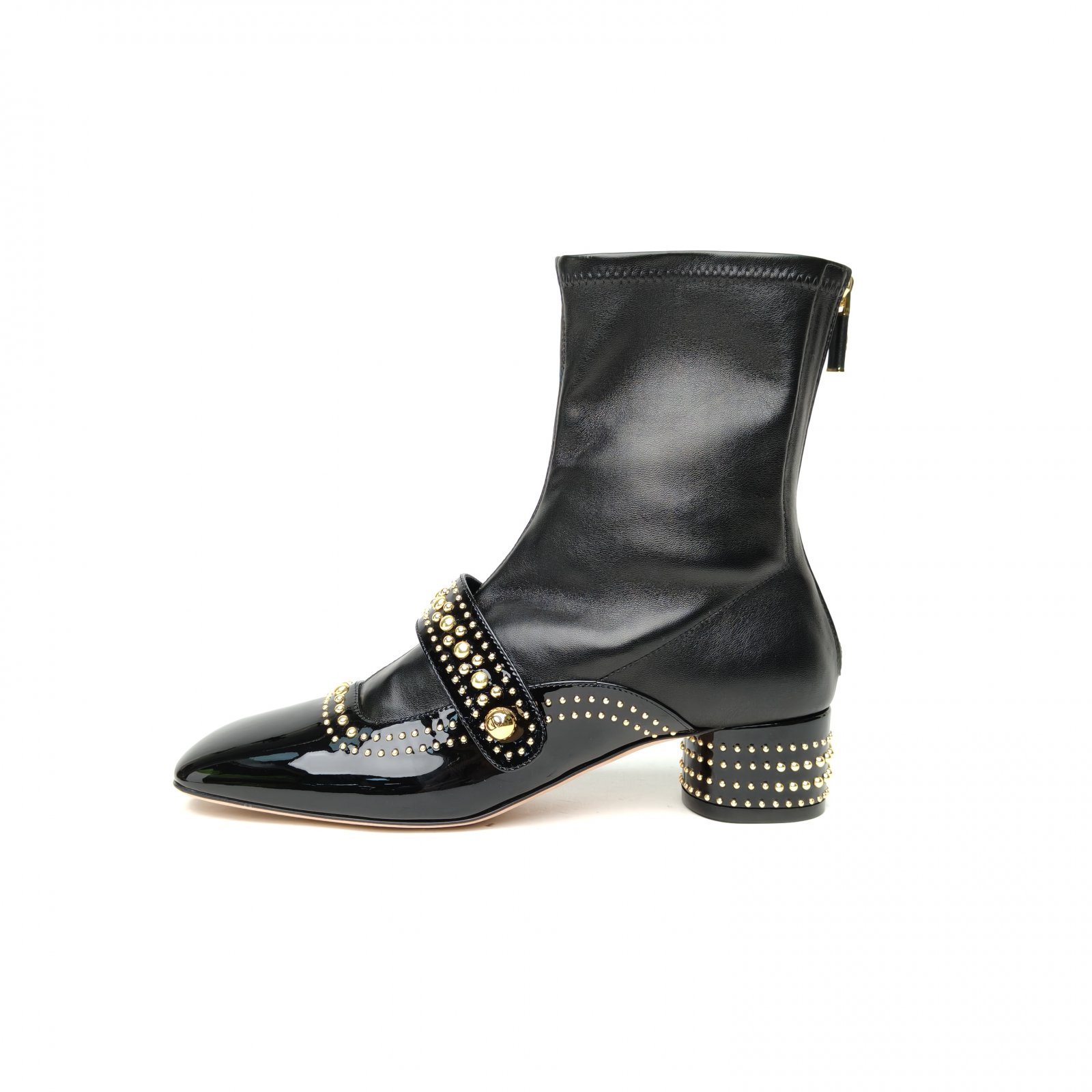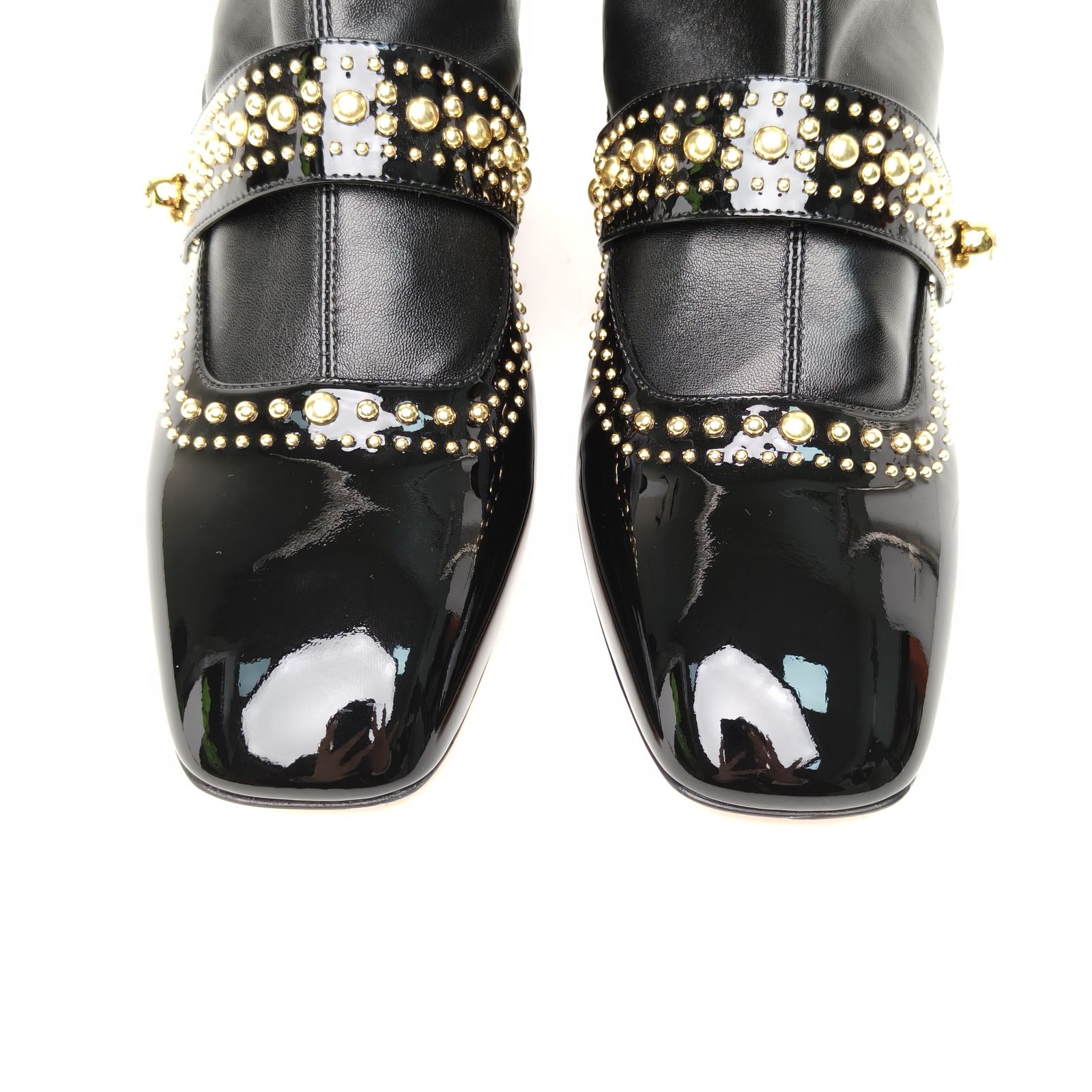 DIOR Black Belle-D square toe Studded short boots size 37.5