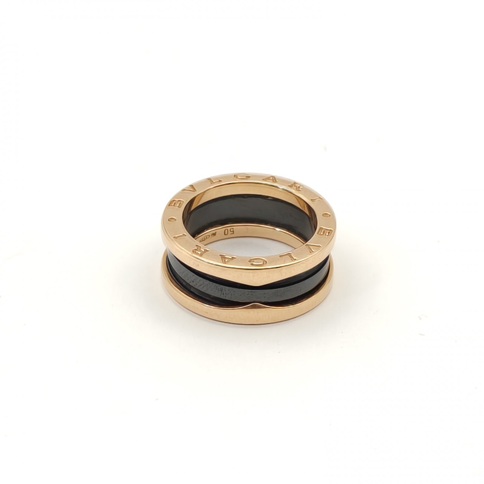BVLGARI B.ZERO1 Coil Ring Three Rows 18K Rose Gold,Black Ceramic